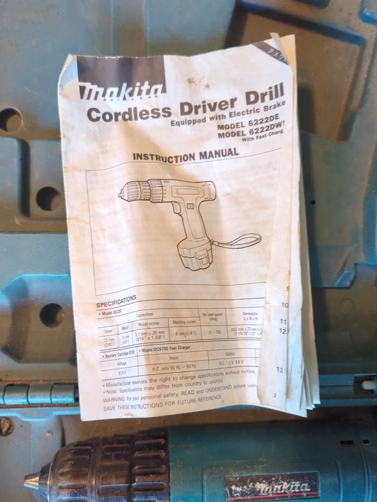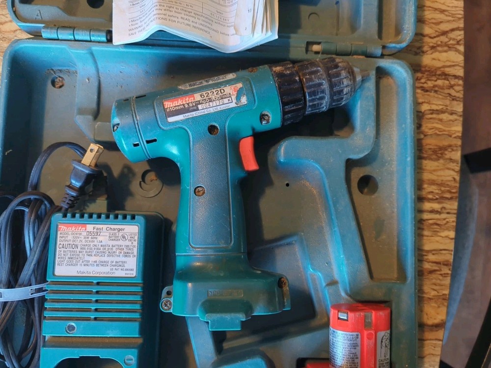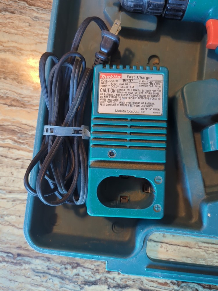 Vintage Makita 6222D Cordless Driver Tool, Battery, & Charger. Battery does not hold a charge. Some marking on items as shown in photos. Driver not tested as battery doesn't charger.