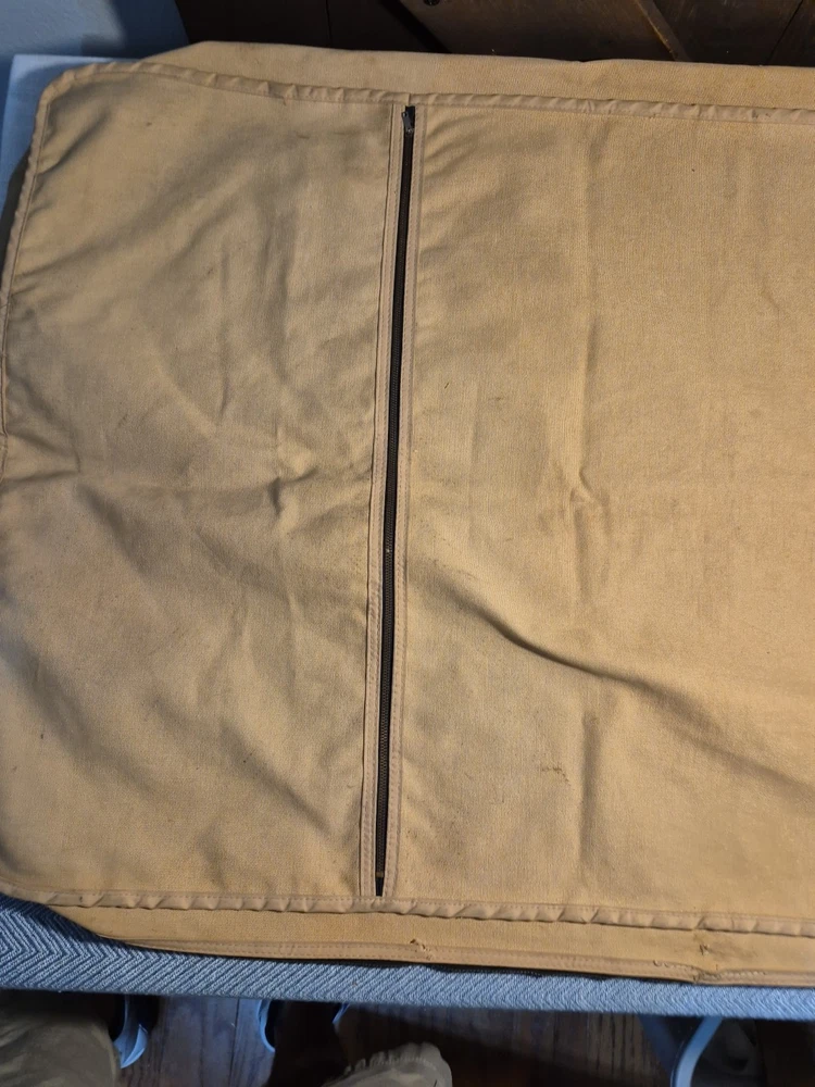 Vintage Mark Cross England Canvas Tan Beige Garment Clothes Travel Bag. Has some light staining, see pictures could be cleaned with a wash