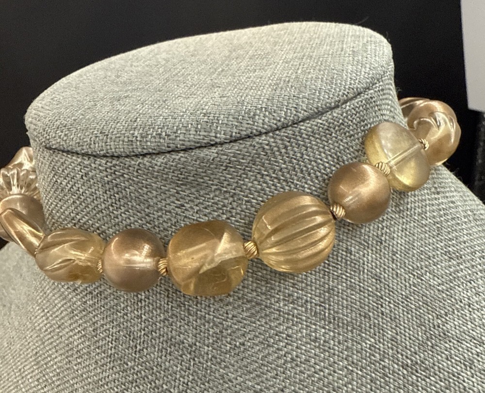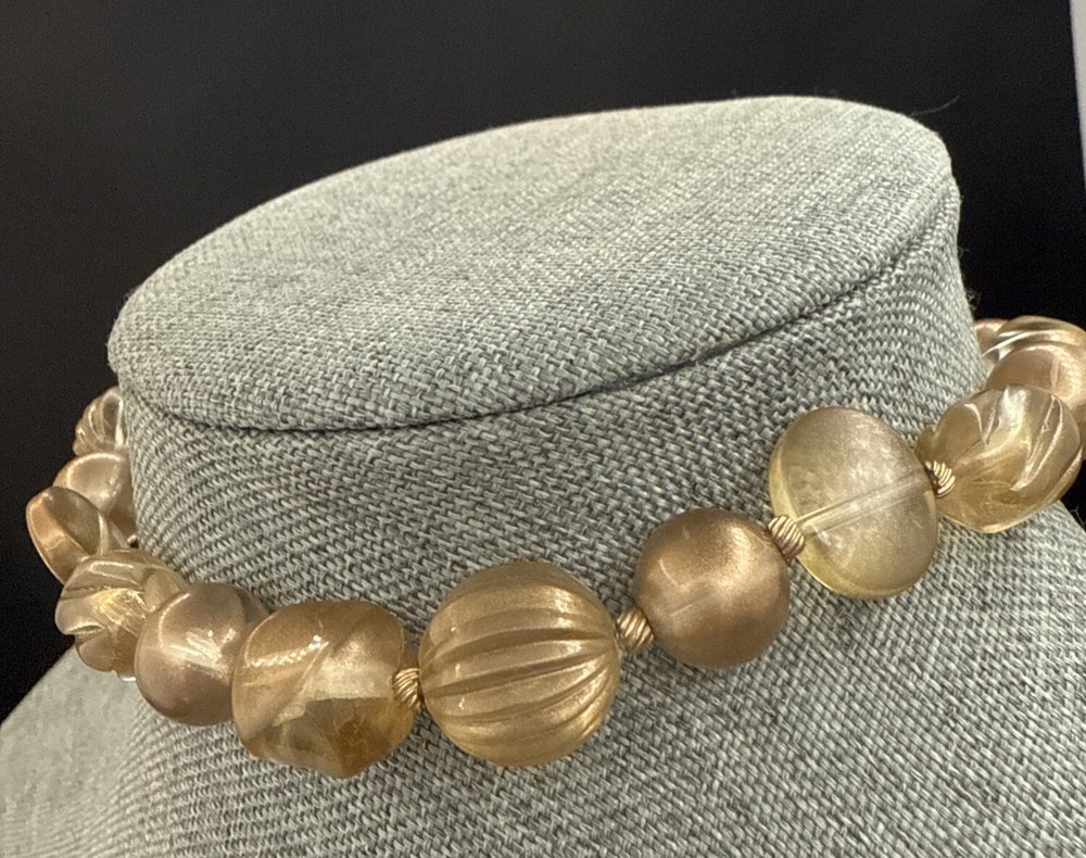 Vintage Marvella Choker Necklace Gold Lucite Beads 13 Inches 1 Inch Extension See Photos (5475)
