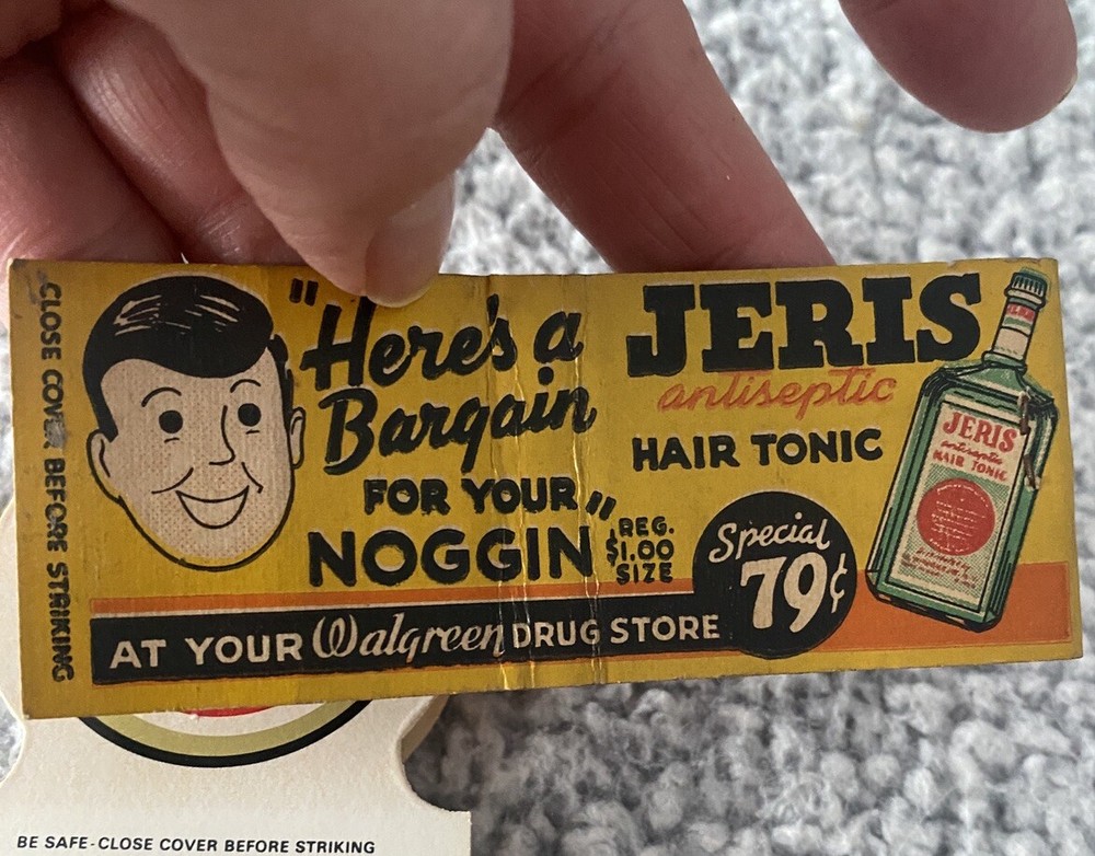 Vintage Matchbooks Jeris Antiseptic Hair Tonic Walgreens Lucky Strike Luckenbach 5-Pack