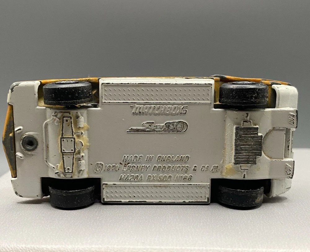 Pictures are part of description. Ok shape but confirm conditions in pictures. For collectors of vintage diecast cars, this Matchbox Superfast NO. 66 Mazda RX 500 is a must-have. Made in England by Lesney in 1971, this limited edition collector's item is made of metal and has a vibrant orange color. The car is in great shape and is perfect for display or play. The car is part of the Matchbox Superfast series and has a scale of 1:64. The vehicle make is Mazda and the model is RX 500. The car features a variety of aspects such as being a collector's item, made in England, and having the Lesney brand. This diecast car is suitable for ages 8 and up, and is a great addition to any collection.