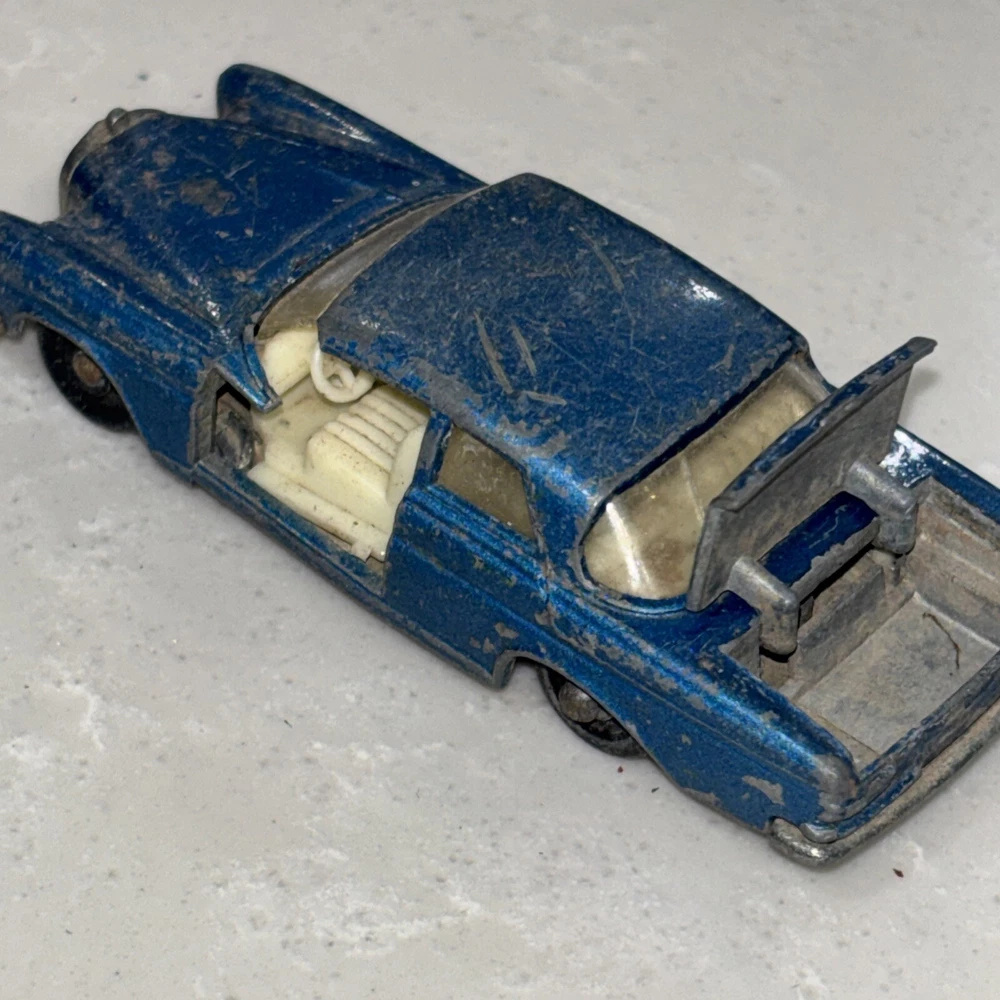The Vintage Matchbox Series No. 46 Mercedes 300 SE is a diecast toy car made by Lesney in England in 1969. This model replicates a blue Mercedes-Benz 300SE at a scale of 1:64. It is part of the Matchbox brand and is suitable for both boys and girls as a collectible vintage toy vehicle. Made with quality craftsmanship, this toy represents a piece of toy car history from the United Kingdom.