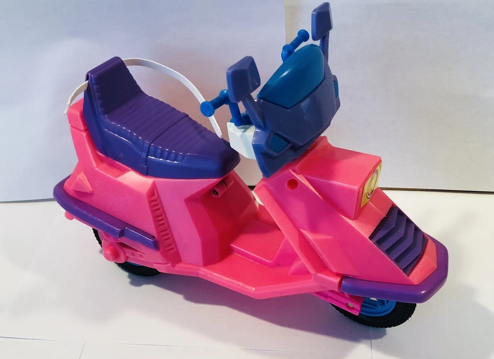 The product is a vintage reproduction Mattel Barbie scooter from 1989. It is pink and purple in color and made of plastic. The scooter is designed for Barbie dolls and is not a custom bundle.