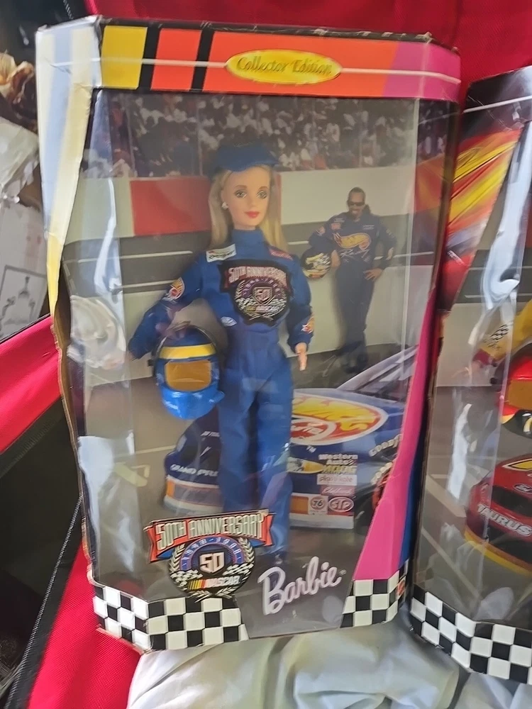 This is a lot of two Barbie dolls from Mattel's NASCAR Collectors Edition line. The dolls were manufactured in 1998 and 1999 and are still in their original packaging. They feature Barbie dressed in racing gear and accessories specific to NASCAR. This set includes two dolls and is a great gift for collectors.