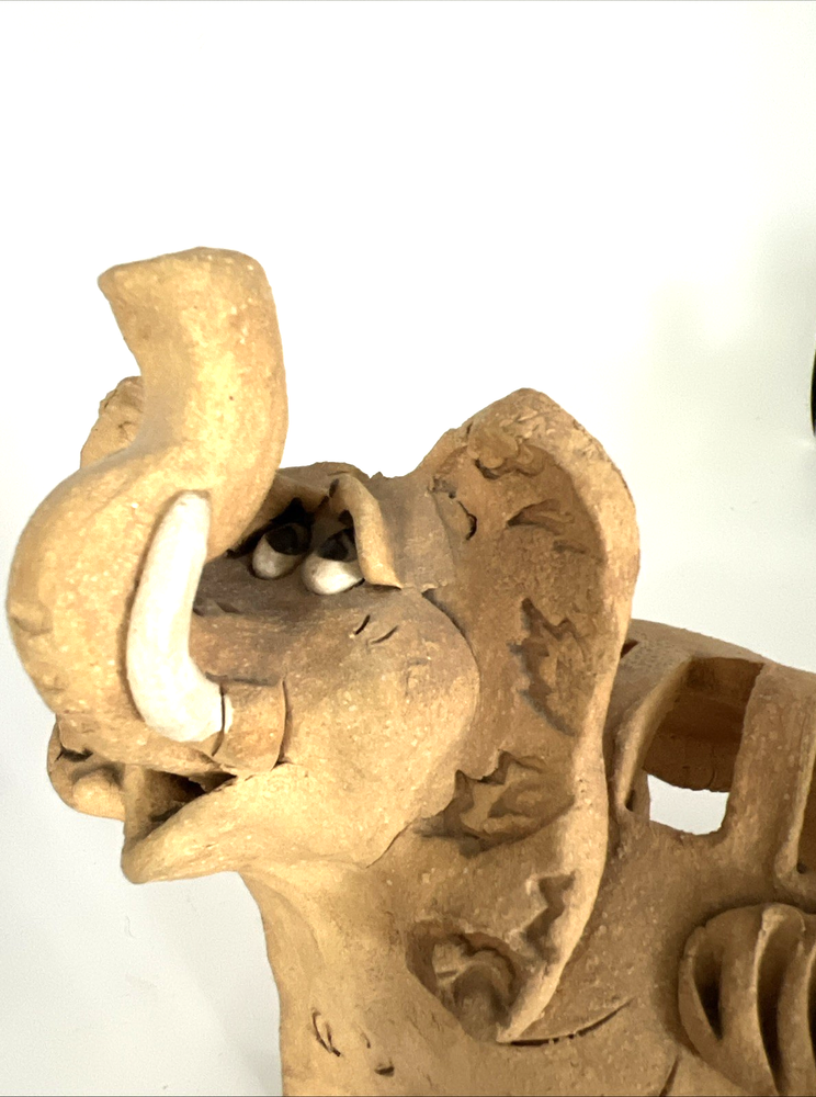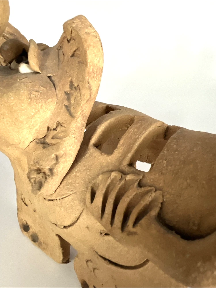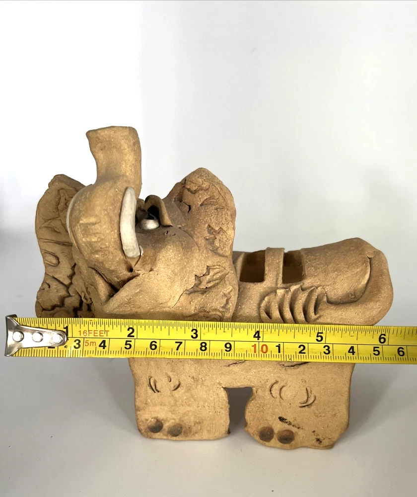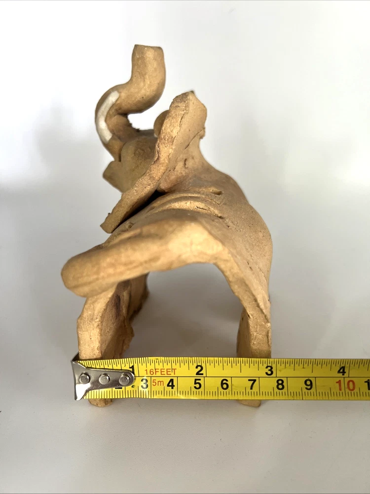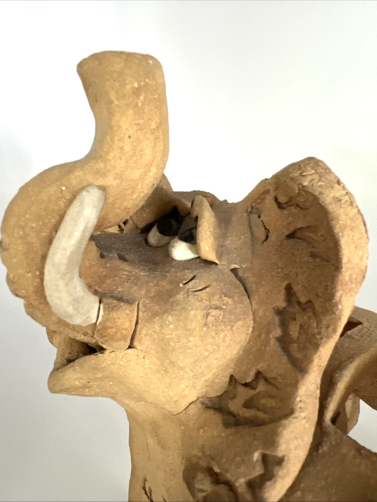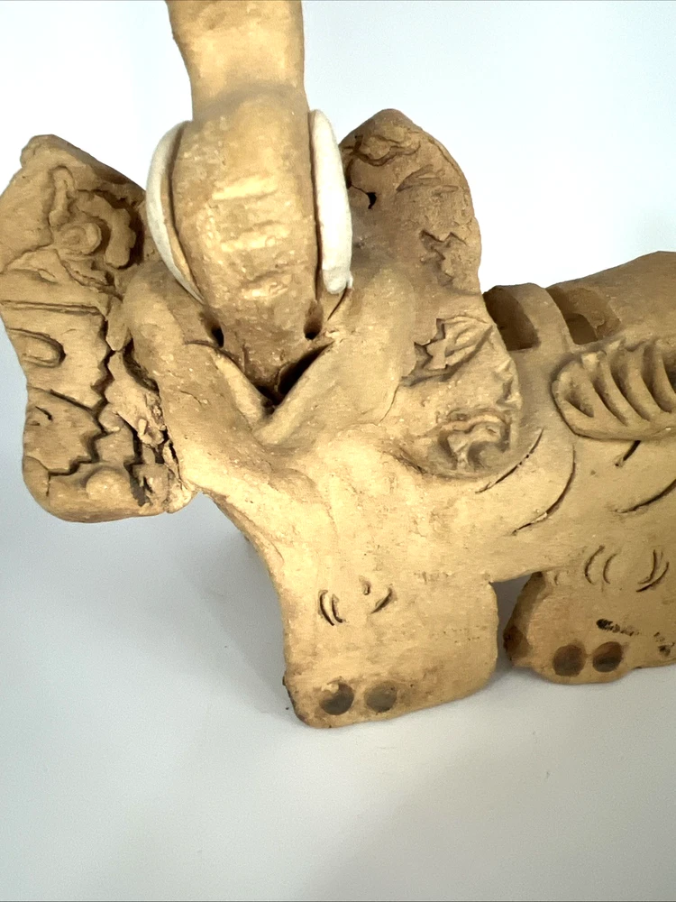 This vintage clay elephant sculpture is such a charming piece! The intricate carving and unique design make it a standout in any collection. The craftsmanship is excellent, and it adds a playful, artistic touch to my space. Arrived safely thanks to the careful packaging—highly recommend!