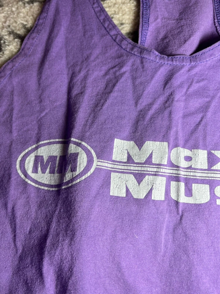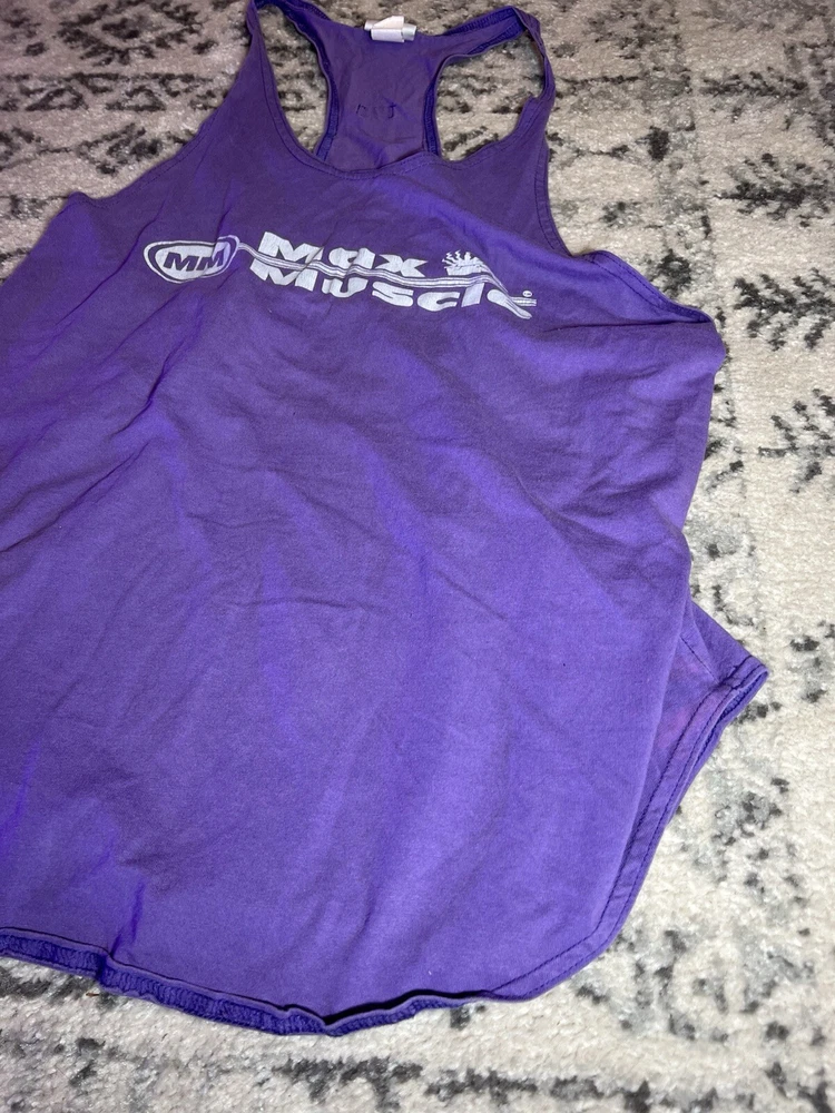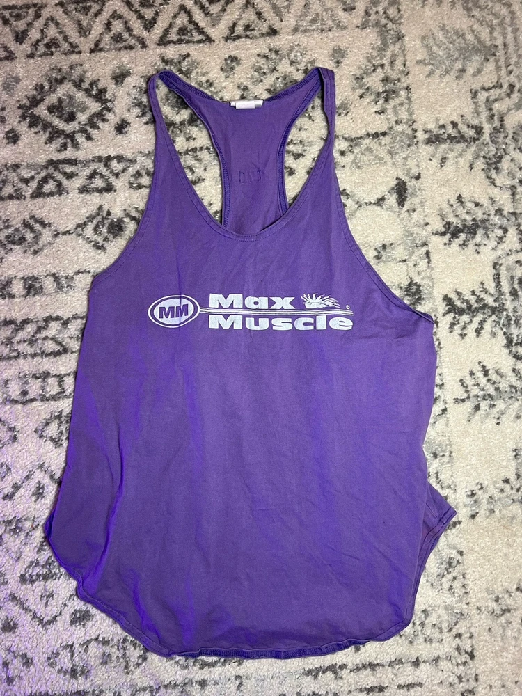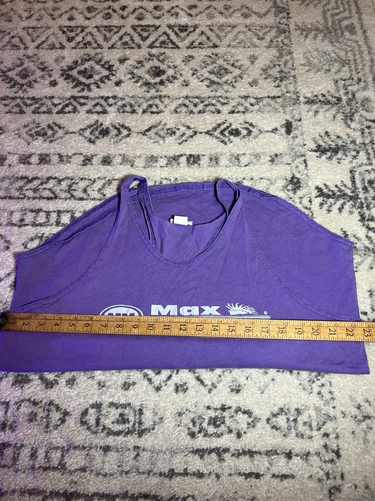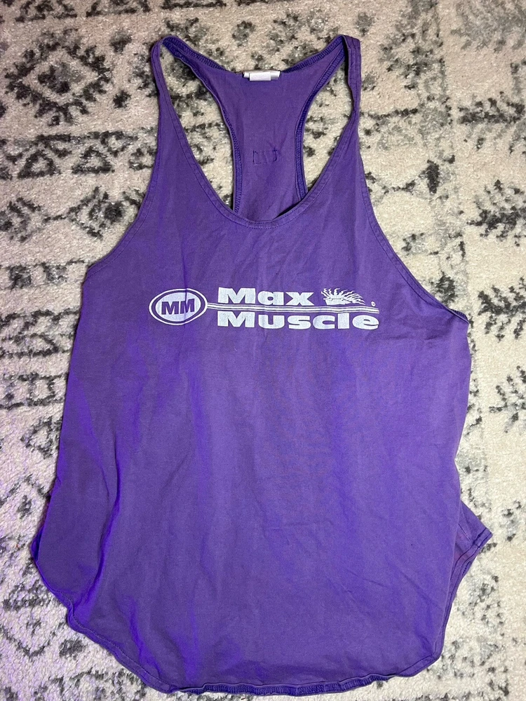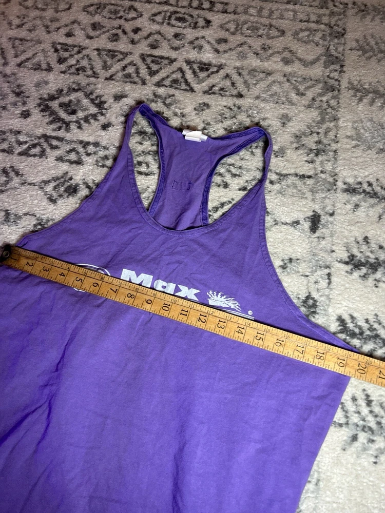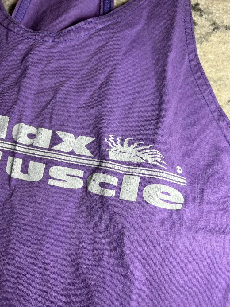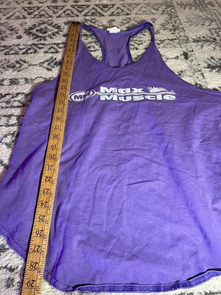 Vintage Max Muscle Gym Training Bodybuilder Faded Purple Tank Size Large Pre owned shows signs of usage throughout the years Please review all photos for measurements and details Comes from a smoke and pet free home Shipped out with care