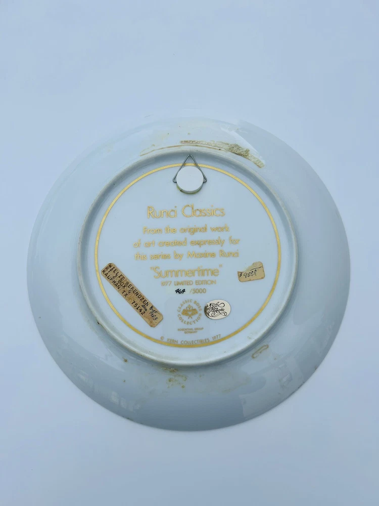 This limited edition Rosenthal plate from the Maxine Runci Classics collection is a beautiful addition to any collector's collection. Featuring a summertime scene, this multicolor plate is made of high-quality porcelain with an art deco style. The plate was produced in Germany with pottery techniques and is in excellent shape for all occasions. The plate has a unique design with Italian culture and is perfect for collectors of art pottery. This vintage piece is a must-have for anyone who appreciates the beauty of collector plates. Add it to your collection today! Beautiful piece No chips or cracks 8.19.24