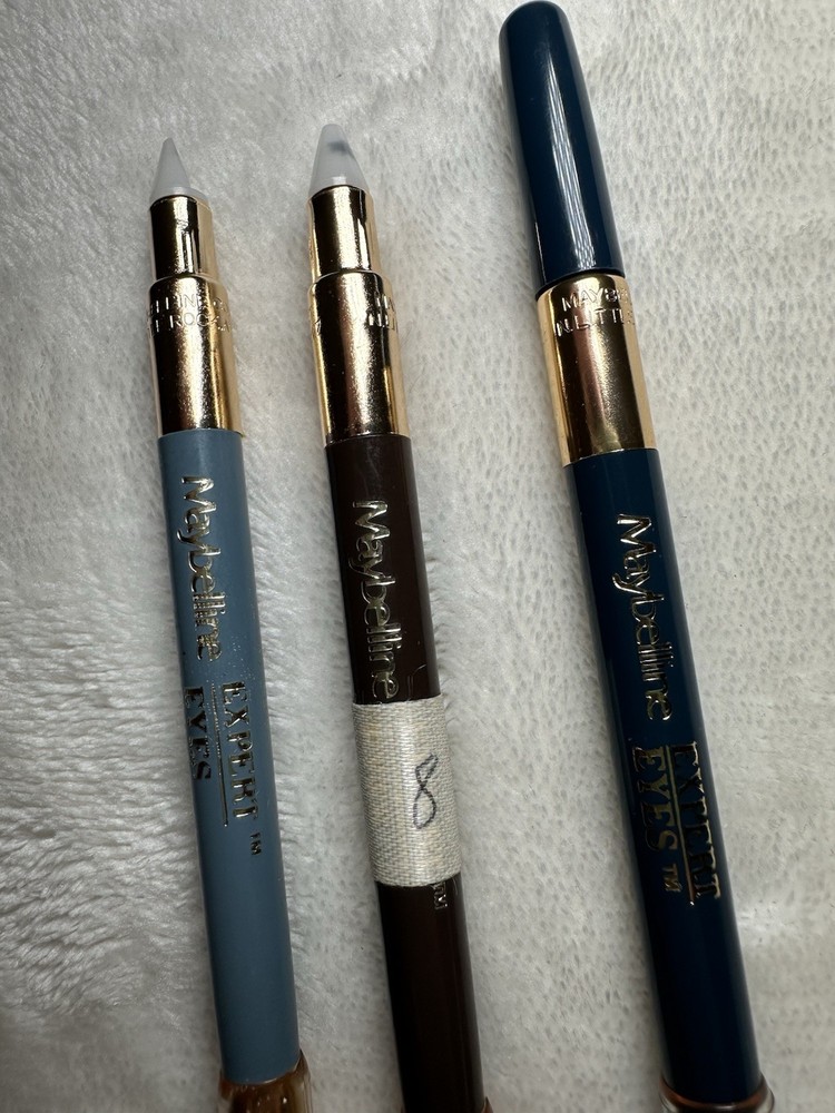 Vintage Maybelline EXPERT EYES Eye Liner lot including demo colors These were handed down to me by someone who worked with Maybelline in the 90s. The middle tape with number leads me to believe this was some kind of tester at the office! They look full, one seems to have been sharped before.