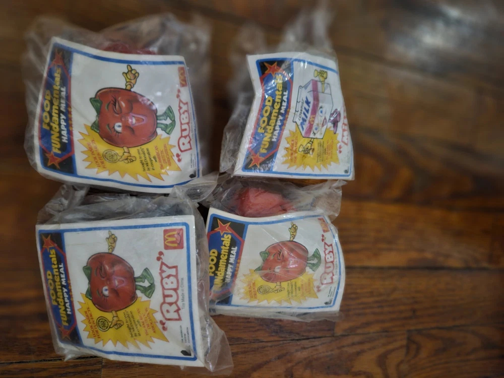 Year: 1993 Restaurant: McDonald's Characters: Ruby Milly Slugger Otis Age Level: 5-7 Years, 3-4 Years, 8-11 Years, 12-16 Years, 17 Years & Up Brand: McDonald's Country/Region of Manufacture: China Character Family: Food Fundamentals