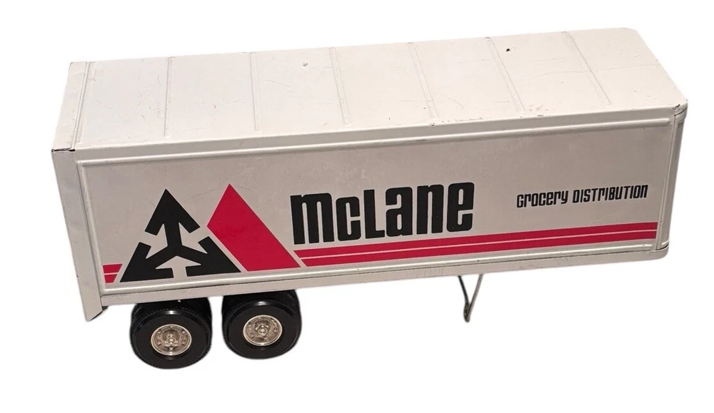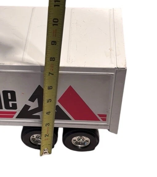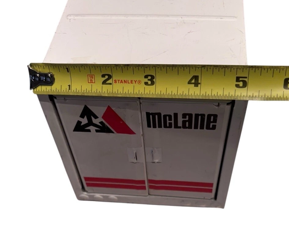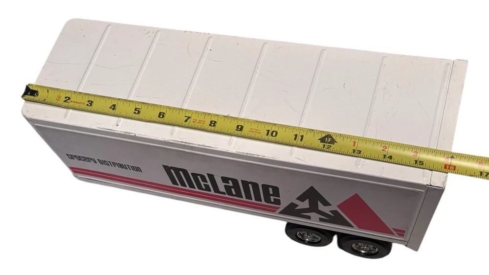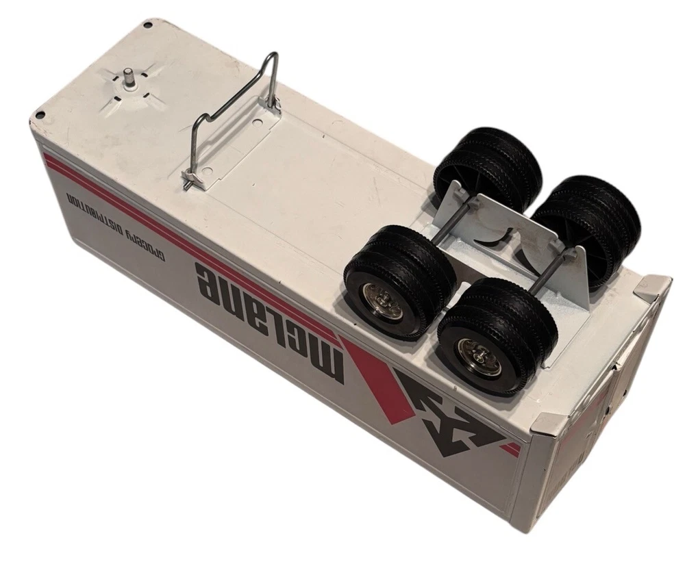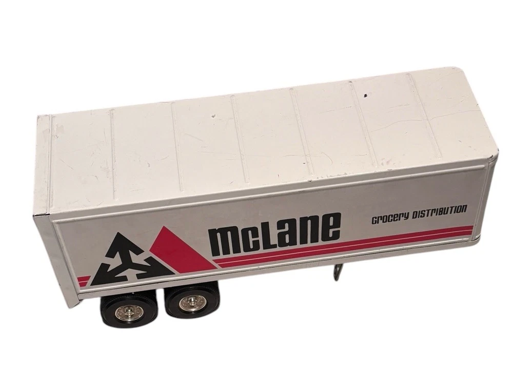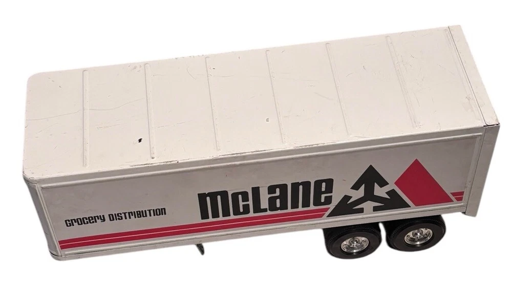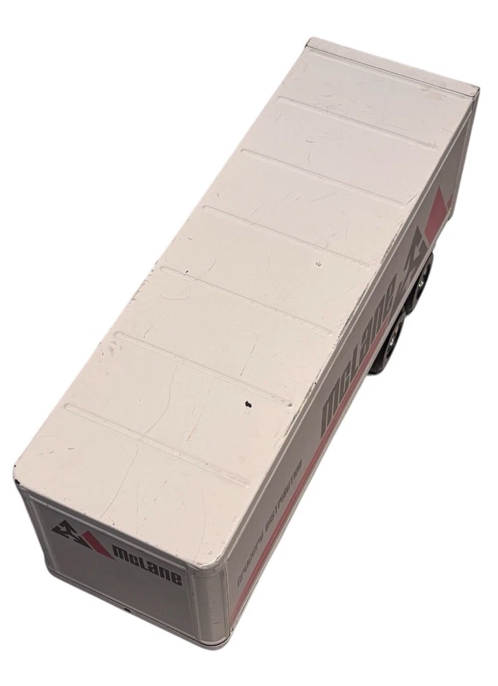 Vintage McLane Company Ertl Metal Toy Trailer 16” White Doors Open No Truck/Cab. Good preowned vintage condition showing normal signs of wear/use with some light scratching/chipping present mainly on the top. The back doors open and close. This listing is for the trailer only. There is no truck or other accessories. Is it approximately 16 inches long. Please see photos for design and condition details. Don’t hesitate to message me with any questions.