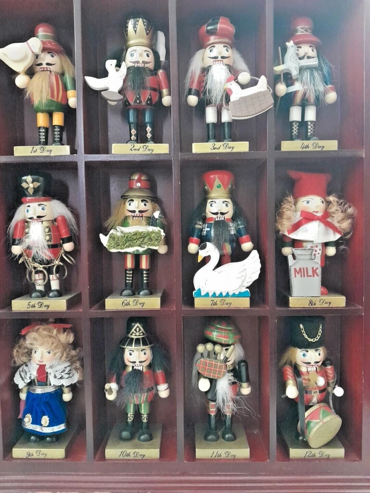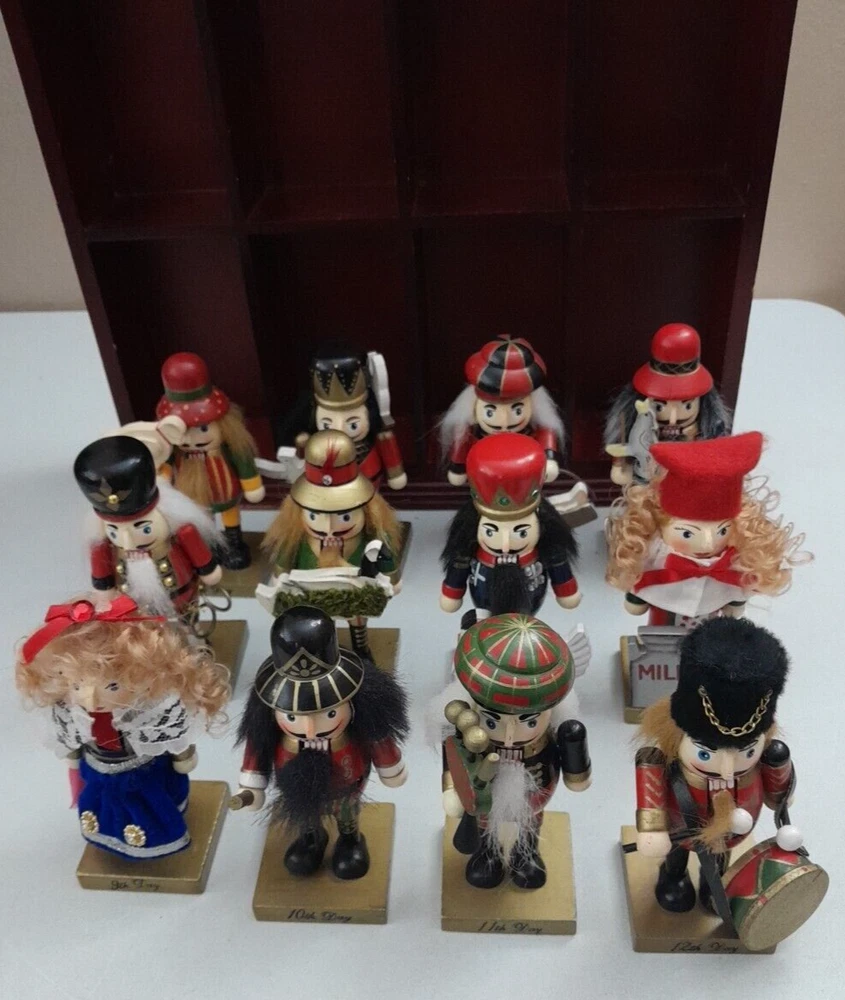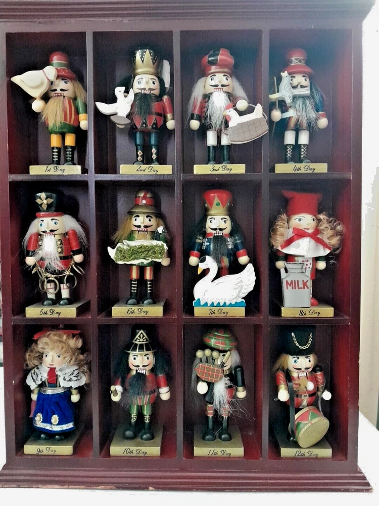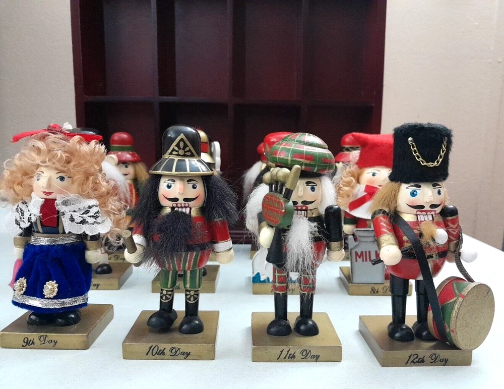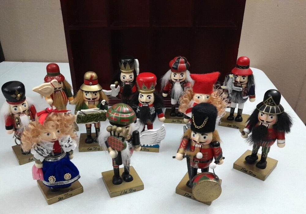 Personalize: No Modified Item: No Occasion: Christmas Country/Region of Manufacture: Unknown Character: Nutcracker Antique: No Year: unknown Color: Multicolor Age Level: Over 18 Years Franchise: Nutcracker Item Weight: 5.5 lb Type: Nutcracker Year Manufactured: 1999 UPC: Not applicable Size: Medium MPN: Does not apply Number of Items: 13 Handmade: No Department: Adult Time Period Manufactured: Current (1991-Now) Item Width: 2.5 in Vintage: Yes gtin13: Not applicable Features: Decorative, Standing, Vintage Subject: 12 Days of Christmas Ornament Material: Wood Item Length: 14 in Brand: Member's Mark Theme: Christmas Style: Classicism Item Height: 18 in Shape: Rectangle