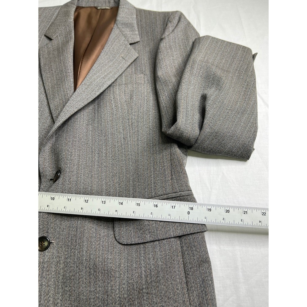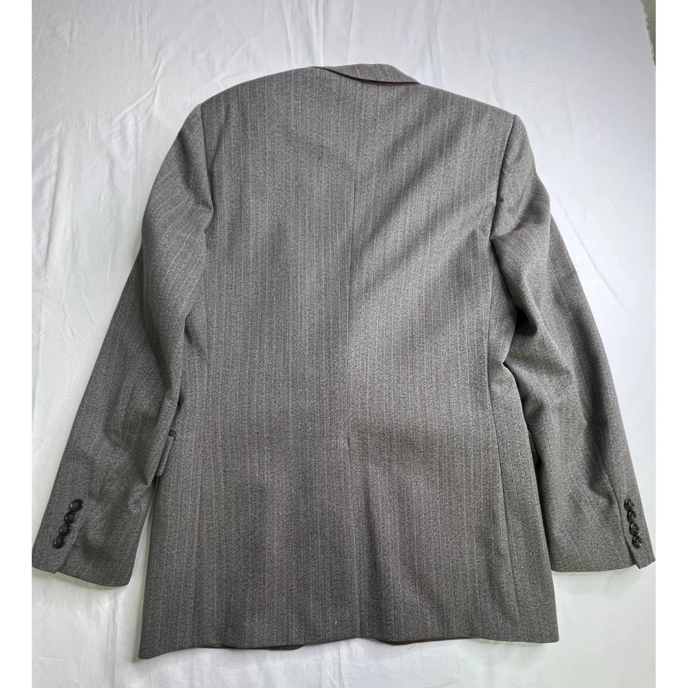 Embrace timeless sophistication with this vintage herringbone blazer. A classic cut brings to mind images of roaring fires in libraries and cozy hunting lodges. The fully lined interior ensures a comfortable fit, while the two-button closure and flap pockets offer a polished and functional design. Perfect for adding a touch of heritage style to a business meeting, a weekend brunch, or an evening at the theater. Measurements: • Shoulder to shoulder: 18 inches • Pit to pit: 22 inches • Length: 31 inches • Sleeve length: 24 inches Type: Blazer Outer Shell Material: Wool Department: Men Lining Material: Polyester Insulation Material: Polyester Theme: Classic, Retro Fabric Type: Tweed Features: Lined, Single-Breasted Accents: Button Pattern: Herringbone Performance/Activity: Golf, Hiking, Walking Closure: Button Occasion: Business, Casual Keywords: mens blazer, herringbone blazer, wool blazer, sport coat, vintage blazer, brown blazer, gray blazer, mens jacket, classic mens clothing, retro blazer, dress jacket, two button blazer