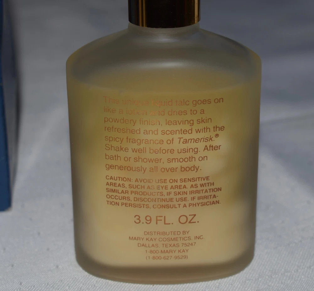 Vintage Men's Mary Kay Tamerisk #53833 Liquid Talc 3.9 fl oz Item Condition Is New Old Stock In The Box / Never Used. Original Box Does Have Some Storage Wear From Over The Years So Please See Pictures If That Is A Concern For You. Pictures Show The Exact Item(s) You Will Receive. Thank You.