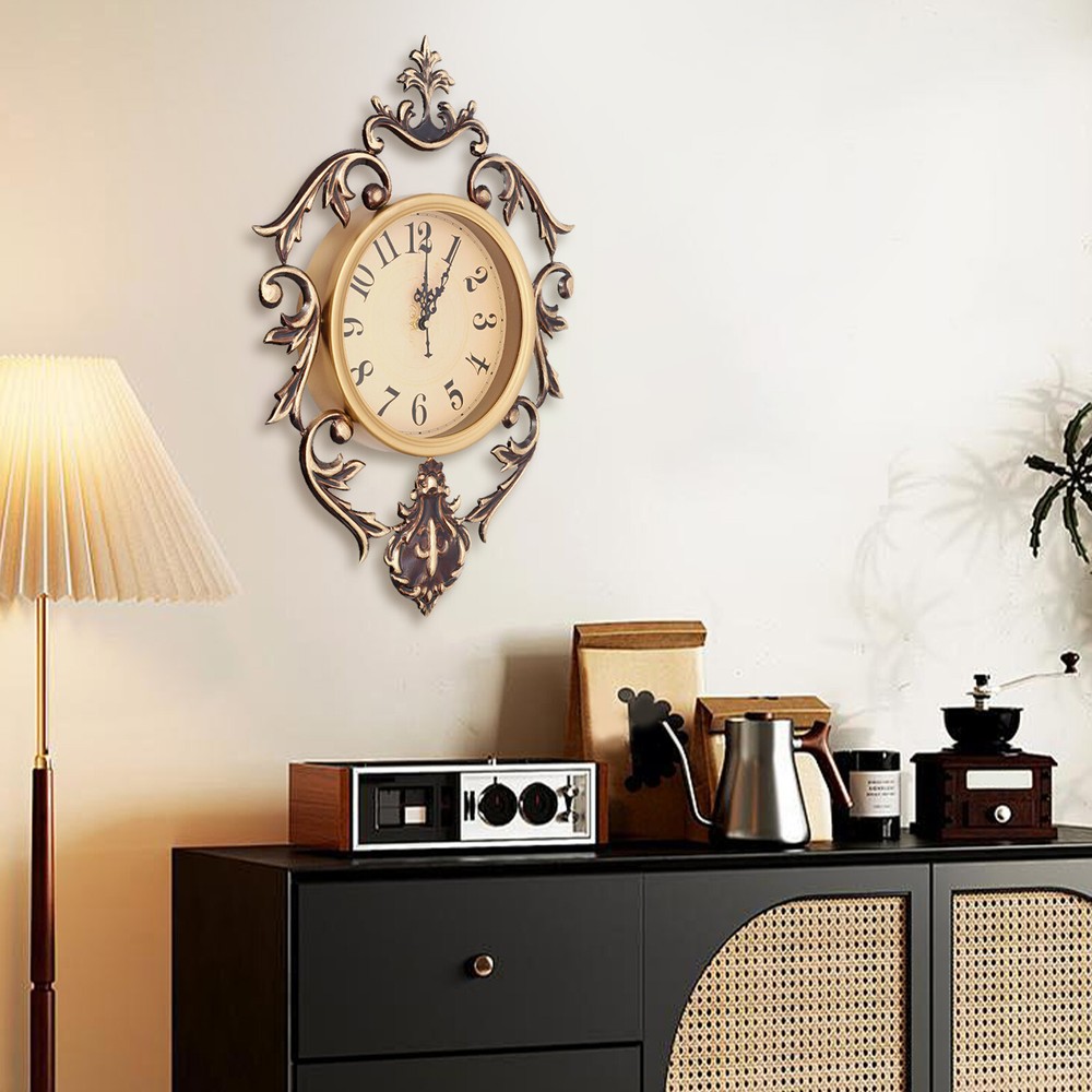 Vintage Metal Wall Clock, Decorative Retro Wall Clock for Bedroom/Living Room Description A good wall clock can enhance your quality of life. It is made of premium material and fine craftsmanship to ensure durability. Advanced movements and prominent numbers allow you to quickly and accurately determine the time. The exquisite carvings and retro style make it not only a timing tool but also a work of art in home spaces. It is a highlight of interior decoration! Key Features Build to Last : It is mainly made of premium iron and aluminum and adopts a manual painting process, which has the characteristics of high hardness, high abrasion resistance, corrosion resistance, rust resistance, and does not fade, ensuring long-term use without frequent replacement. Quiet and Accurate Movement : It adopts a silent, sweeping, and quartz movement, which ensures smooth and accurate operation of the clock hands while allowing you to enjoy a quiet environment during sleep, study, and work. Unique Appearance : The exquisite carvings and elegant bronze and gold colors present a strong retro style, making it not only a timekeeping tool but also an art piece in your home space. Space-saving : It adopts wall-mounted installation, which can effectively use the free space on the wall and beautify the home environment at the same time. Simple Installation: The simple structure and complete accessories allow you to quickly and accurately install it on the wall, saving time and effort. Easy to Maintain: Thanks to the smooth surface and simple structure, you can easily wipe off the dirt on it with a soft cloth. Exquisite Gift : Its exquisite design can leave a deep impression on people. Whether it's moving into a new home, a wedding celebration, or a holiday blessing, it's a great gift for family and friends. Protective Package: To prevent the product from being damaged and bumped during transportation, we packed it with foam and cartons to protect your products to the maximum extent possible. Details Clear Numbers: Large numbers and bold black make it easy for you to quickly identify and obtain accurate time. Aluminum Hands: The lightweight material allows it to reduce the load on the movement when the hands are running, increasing the accuracy of the clock's operation and prolonging its life. Application It can be used as a wall clock and wall decoration for a home, bedroom, living room, office, hotel, dining room, foyer, hallway, coffee bar, flower shop, etc., adding uniqueness to your space. How to Install Choose a suitable location on the wall. Use a hammer(not included) to directly drive the nail into the wall; Stop the nail head 0.2 inches away from the wall to hang the hook. Put the AA battery in the clock. Turn the gear on the movement to adjust the time. Hang the clock on the nail. Complete the installation. Specification Style: Retro Color: Vintage Bronze, Gold Material: Iron, Aluminum Process: Manual Painting Installation Required: Yes Mounting Type: Wall-Mounted Display Type: Numbers, Analog Power Source: Battery Powered Indoor/Outdoor Usage: Indoor Battery Type: 1* AA Battery Dial Diameter: 24cm/9.45in Product Size(W*L): 37.5*54cm/14.76*21.26in Package Size: 49*46*7cm/19.29*18.11*2.76in Gross Weight: 1.45kg/3.2 lbs Net Weight: 1.38kg/3.04 lbs Package Included 1* Wall Clock All Accessories for Installation Notes Please do not use alkaline batteries or rechargeable batteries as they may affect the life of the movement, use carbon batteries. Before starting to use this product, please set the time manually. Please adjust the time by turning the gears on the back of the clock, do not turn the hands directly to avoid damaging the clock mechanism. If the time is inaccurate during use, please replace the battery in time. Please knock carefully to avoid smashing the hook. Please avoid using it on rotting wood and peeling walls. If used on tiles, please nail it to the joints to avoid damaging the surface of the tiles. Please allow the slight color difference caused by the shooting light and 1-3cm error due to manual measurement, and make sure you do not mind before you place the order. Payment Delivery details Terms of sales About us Contact us Payment We accept ebay payment 。 Fees such as import duties, taxes are not included in the item price or shipping costs. These charges are the buyer's responsibility. Delivery details Shipping: 2-9 working days to: USA Terms of sales We maintain high standards of excellence and strive for hundred percent customer satisfaction. Feedback is very important to us. We hope that you contact us immediately before you give neutral or negative feedback, so that we can address your concerns. It is impossible to address issues if we do not know about them! About us Your satis faction is our ultimate goal. We work hard to earn your trust and future business. Our certified technicians have tested each item before shipping. The unit comes with 1 year limited warranty on all manufacturing defects. a) If you receive a defective item, you may return it or ask for a discount. Please contact us within 14 days after you receive the package. b) What you returned must be intact and in its original packaging as re? u. Customer is responsible for shipping costs of the returned item. c) We will cover the cost of shipping back t with the shipping rate indicated in the registration page. We will send you a new unit or refund the full payment you paid. Thank you. Contact us Business Hour Business Hour: Monday To Friday: 8:30 AM to 5:00 PM (Beijing China time) Due to time zones, our reply to your questions may not be immediately. But within above working time, we will reply your email within 24 hours. If it's non-workdays, please kindly be patient and wait till Monday. Please contact us with ebay message. Please feel free to contact us if you have any questions. Monday To Friday: 8:30 AM to 5:00 PM (Beijing China time) Due to time zones, our reply to your questions may not be immediately. But wit