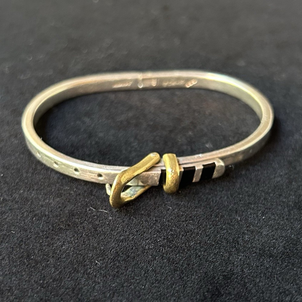 HomeVintage Mexican Sterling Silver Buckle Bracelet with Brass and Onyx Accents
