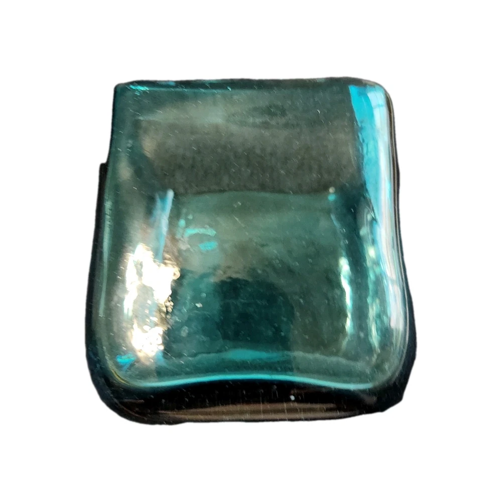 Vintage Mexican Teal Blue Blown Glass Votive Holder Pair