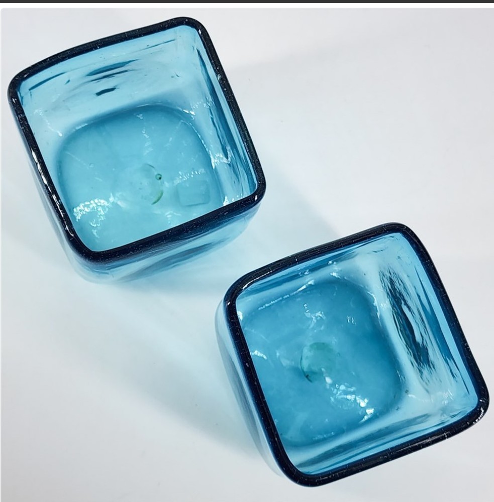 Number in Pack:2Country/Region of Manufacture:MexicoBrand:UnbrandedShape:SquareColor:BlueOriginal/Reproduction:OriginalSize:SmallStyle:MexicanMaterial:GlassItem Height:3 inType:Candle Holder