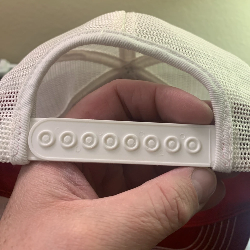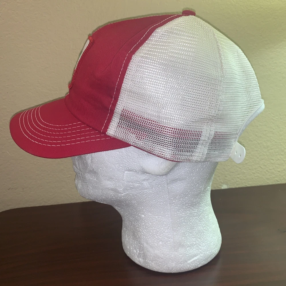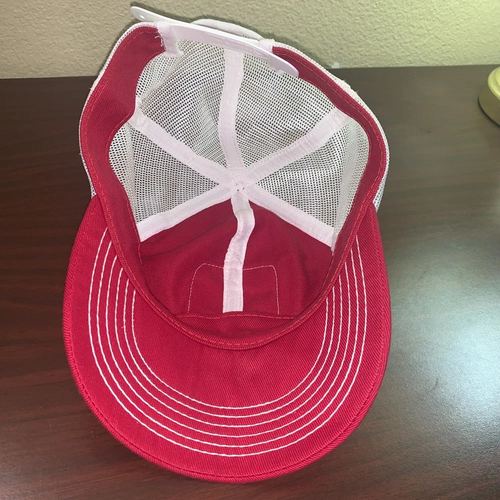 Vintage MiGRO snapback adjustable meshback farmer hat, K-Products This is large hat, fits a 7.5-sized head at 7 snaps. As stated in the condition description, the bill is very soft and shapeable. It is almost as if it is made with a thick cloth.