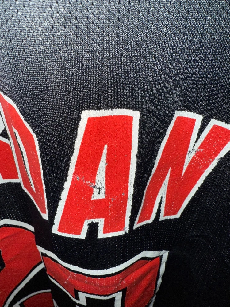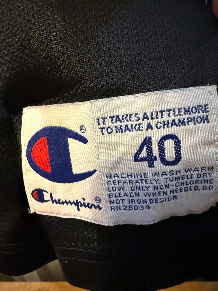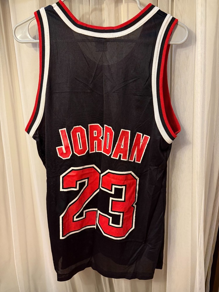 Capture the spirit of the game with this vintage Michael Jordan NBA Chicago Bulls Champion basketball jersey. Adorned in the iconic Black, this size 44 jersey is a true homage to the legend of the hardwood, Michael Jordan himself. Designed for the dedicated fan, it features the distinguished #23, signaling Jordan's legendary status within the National Basketball Association. Crafted with quality and authenticity in mind, this jersey is officially licensed and proudly bears the Champion brand's mark. Perfect for displaying your allegiance during the regular season and beyond, it's a must-have for any enthusiast of the sport or collector of basketball memorabilia.
