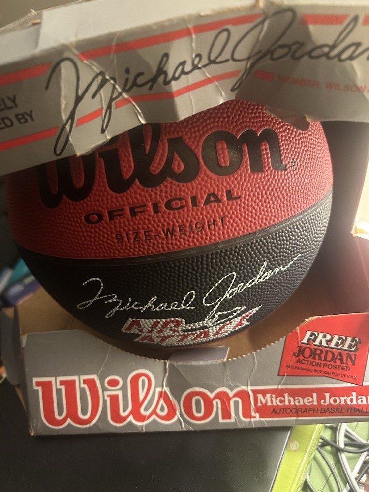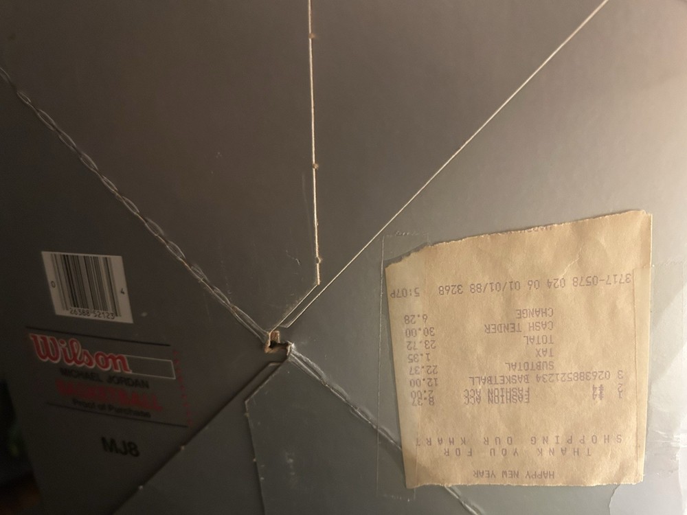 Vintage Michael Jordan “Air Attack” Basketball – Chicago Bulls NEW / Never Used – Original Box Included – Original 1/1/1988 Receipt Up for sale is a brand new, never used vintage Michael Jordan Air Attack basketball. The basketball has never been played with and has been stored in its original retail box since purchase. Details: • Player: Michael Jordan • Team: Chicago Bulls • Model: Air Attack • Era: Late 1980s • Condition: NEW / Never Used • Includes: Original box with original purchase receipt dated 1/1/1988 attached Condition Notes (important): • Basketball itself is clean and unused • Box shows wear consistent with age and long-term storage (creases, tears, tape visible in photos) • Receipt is original and remains attached to the box • Please review all photos carefully; they are part of the description This is an excellent display piece for: • Michael Jordan collectors • Vintage NBA memorabilia collectors • 1980s sports nostalgia 📦 Item will be packed carefully to protect the ball, box, and receipt ❓ Please message with any questions before purchasing