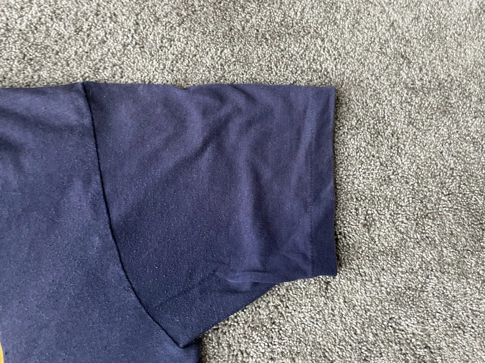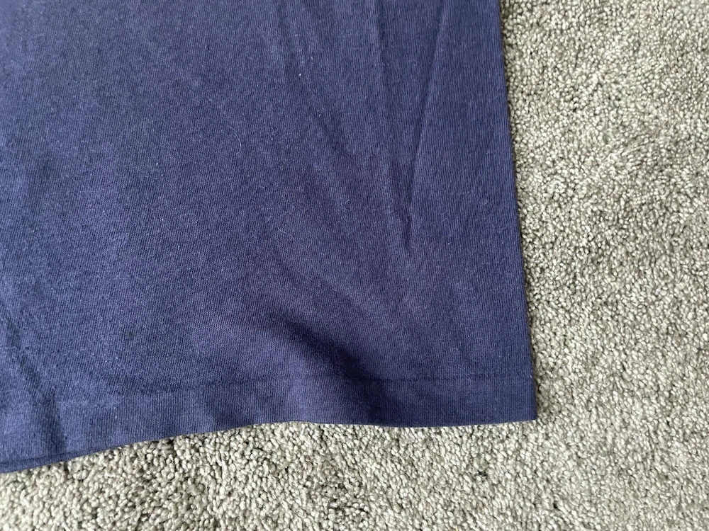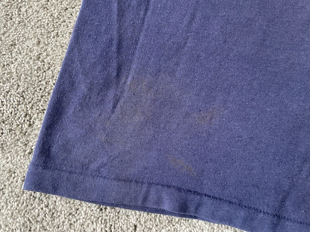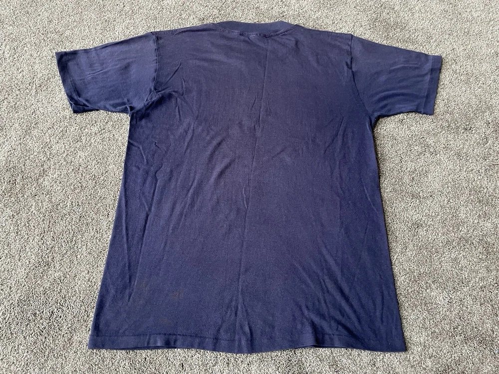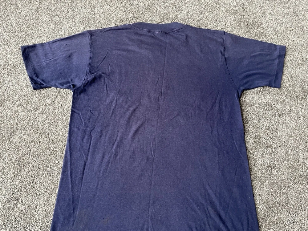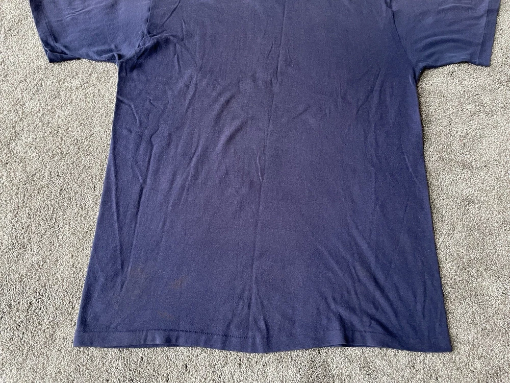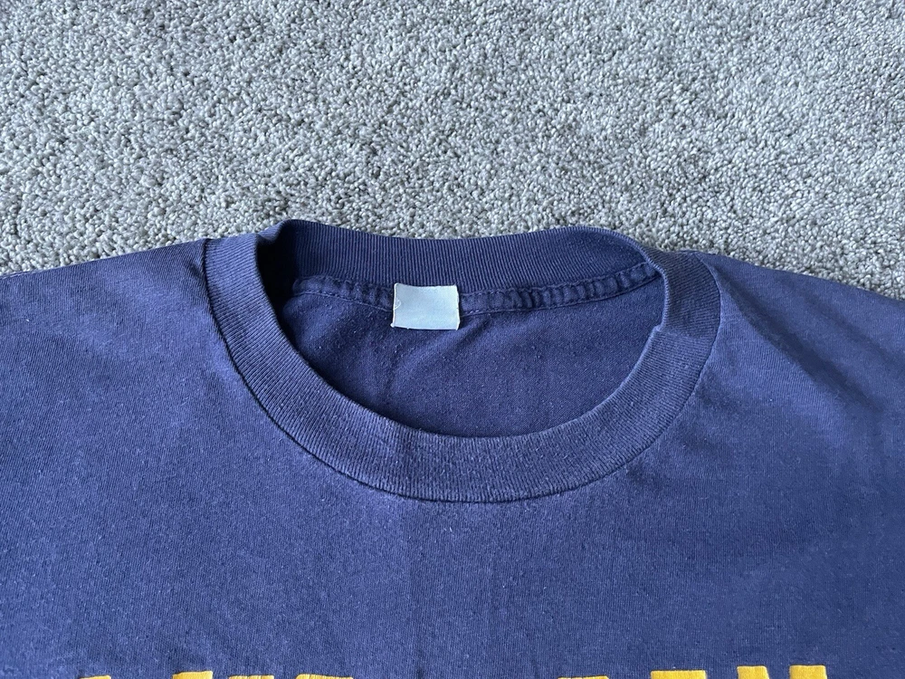 Show off your love for the Michigan Wolverines with this vintage Artex shirt. The blue shirt features a bold spell out of the team's name, perfect for any fan looking to represent during the regular season or playoffs. The shirt is a men's size large and has a classic 70s faded distressed look that any vintage collector would love. Made in the United States, this shirt is a must-have for any true fan of the team and is perfect for any college-NCAA sports memorabilia collection. Whether you're a student, alumni, or just a fan of the sport, this shirt is a great addition to any wardrobe.
