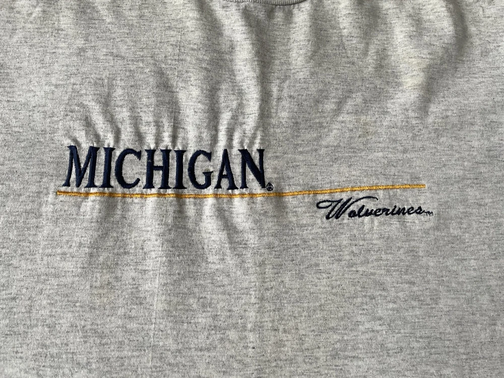 Vintage Michigan Wolverines Shirt Mens Large Gray Embroidered Spell Out College