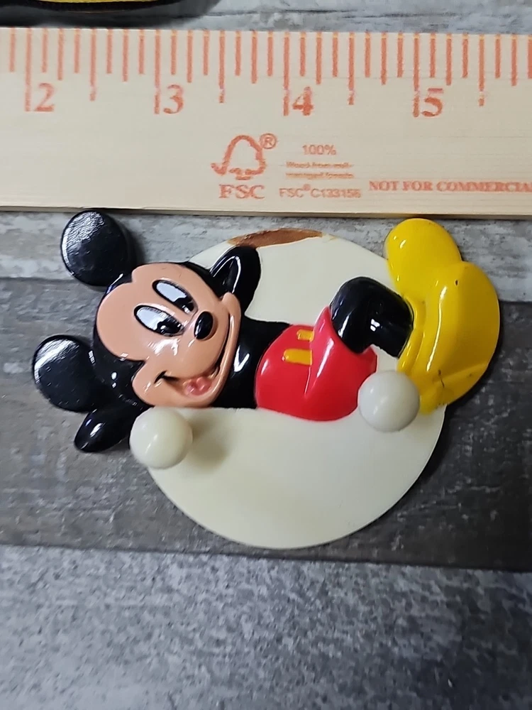 This lot of 3 vintage Mickey Mouse magnets from Disney are a nostalgic collectible for fans of the iconic character. Made in China in 1980, these magnets showcase the timeless charm of Mickey Mouse and are a unique addition to any Disneyana collection. Perfect for displaying on refrigerators or other magnetic surfaces, these vintage magnets capture the essence of the beloved Disney franchise. Please see pictures for details on condition.