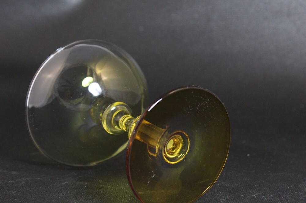 Elevate your toasting experience with the vintage mid-century Libbey Forever Amber Champagne Glass. Exuding a timeless elegance, this glass boasts the iconic Forever Amber pattern that has been cherished for generations. The rich yellow hue adds a warm, inviting touch to your celebratory moments, making it a standout addition to any barware collection.Crafted with precision during the 1940s to 1960s, this piece is a testament to Libbey's commitment to quality and style. The Georgian-inspired design harmonizes with various decor themes, while the glass material ensures durability and a classic feel. Whether you're hosting a special event or enjoying an intimate evening, this champagne glass is sure to impress.