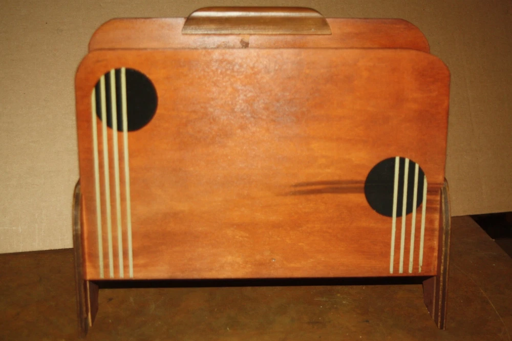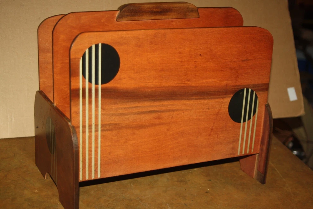 Nice vintage wooden 2 compartment MCM magazine rack - as found - could use a really good cleaning. Nice solid unit - unknown maker - no markings. Measures approx. 14 1/2" long by 9 1/2" wide by 12" tall. Free shipping to lower 48
