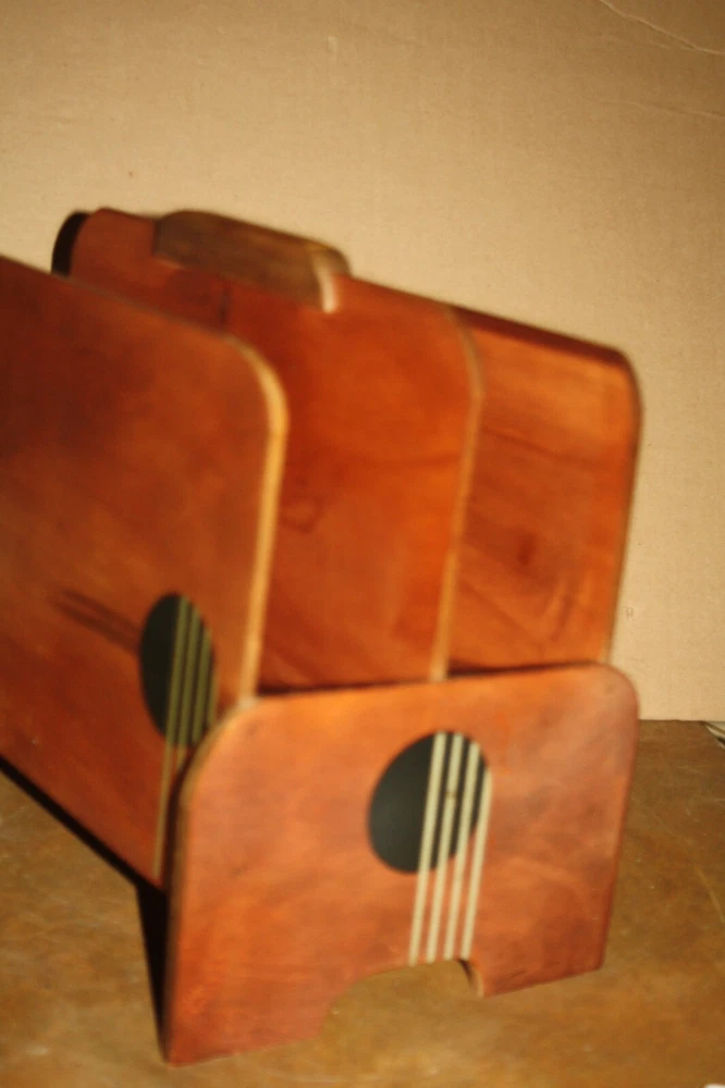 Vintage Mid Century Modern Wooden 2 Compartment Magazine Rack