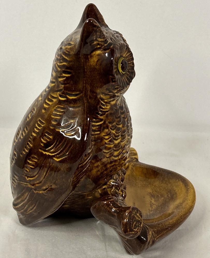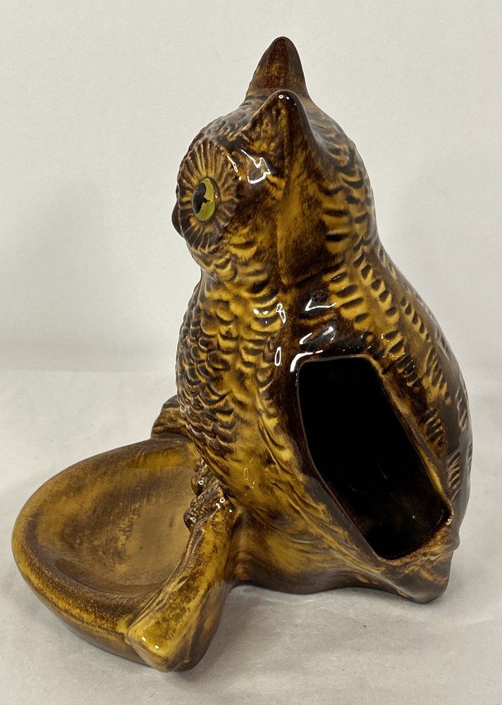 This vintage midcentury modern style Owl on Branch Porcelain Dresser Valet with Wallet Holder and Trinket Tray is a very unique piece. It is signed by the artist (Kenna Linda?) and marked Calif. U.S.A. 9046 on the bottom. This piece is about 8” inches tall, 7” inches wide and about 6” inches deep. This timeless unique piece is the perfect accessory to hold your wallet and whatever else you may have stored in your pockets during the day. Vintage MCM California Pottery Owl on Branch Dresser Valet Trinket Tray Signed is in excellent vintage pre-owned condition, with NO chips, cracks or repairs. However, it does have some paint loss. Please review all pictures for proper assessment of its excellent vintage pre-owned condition.