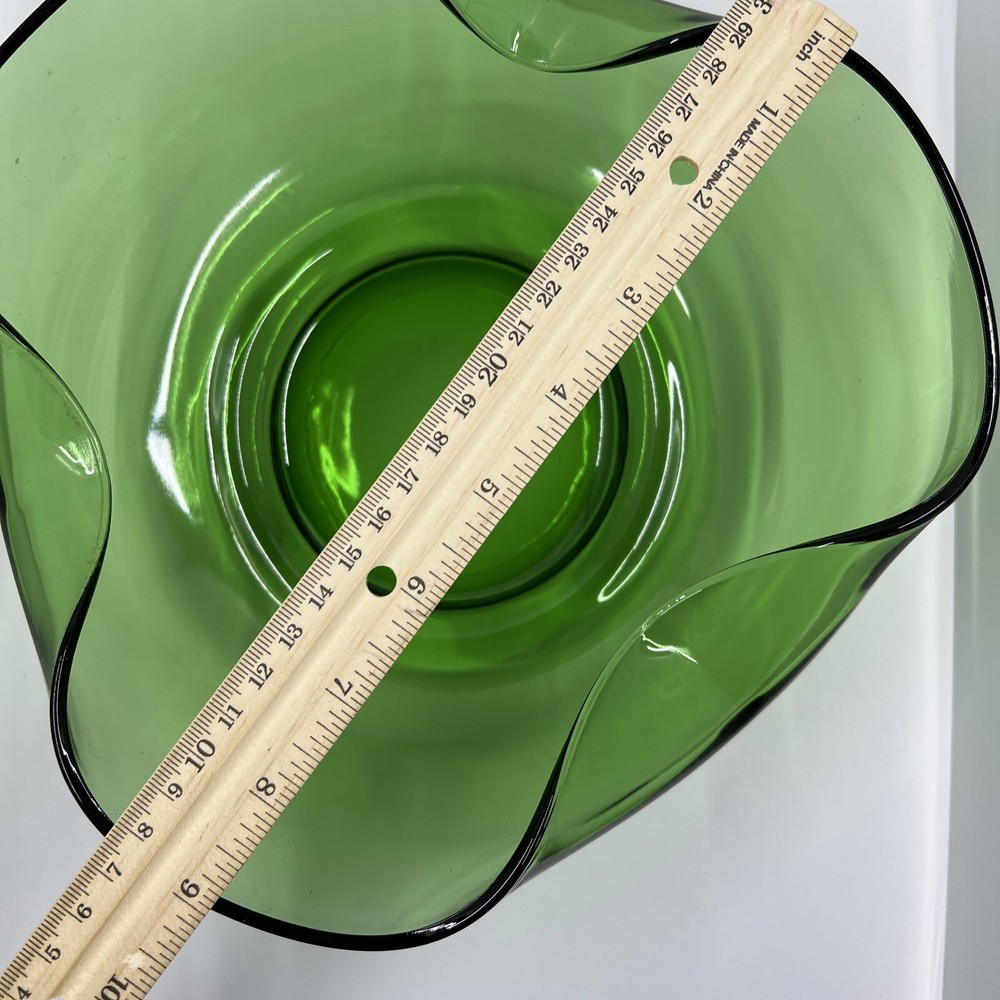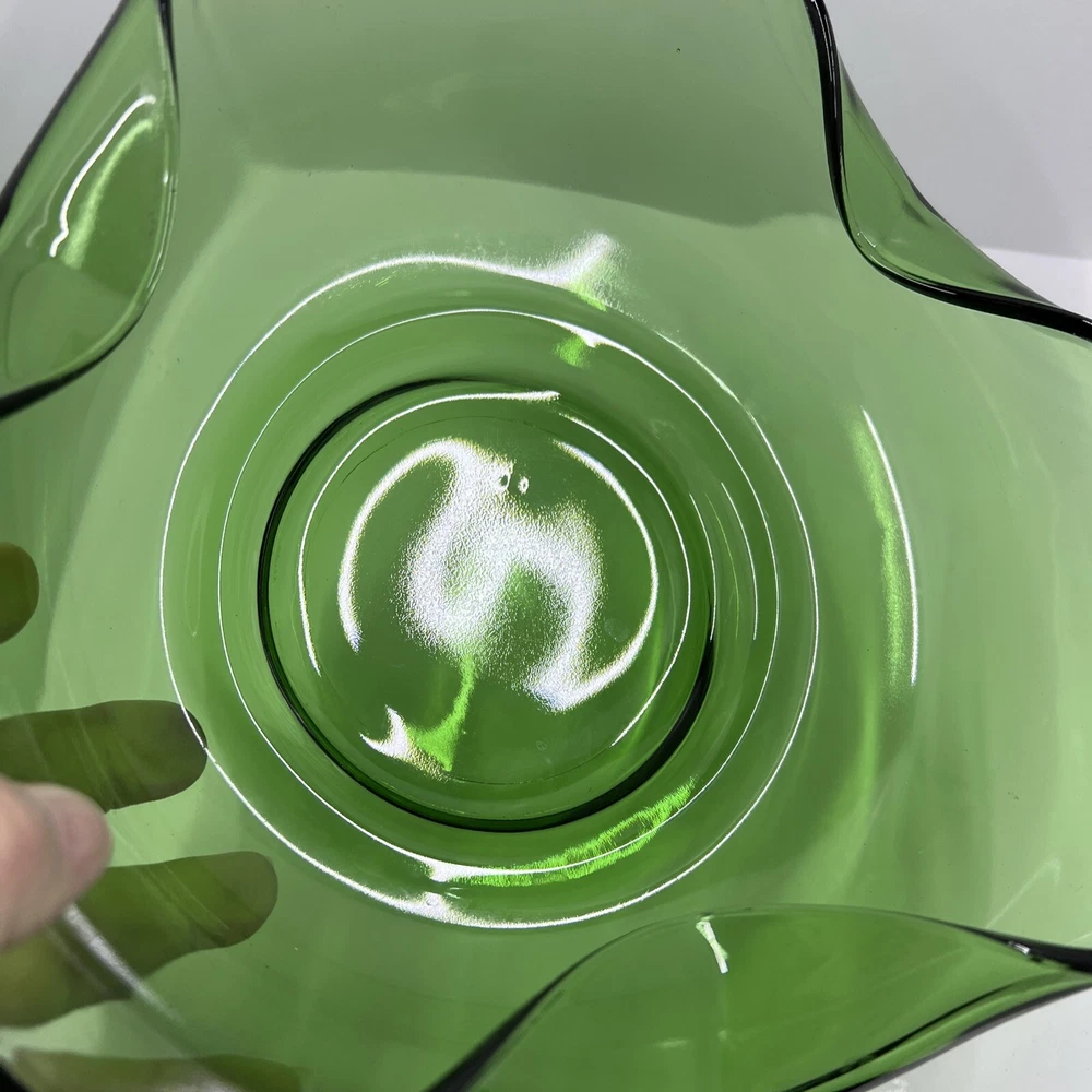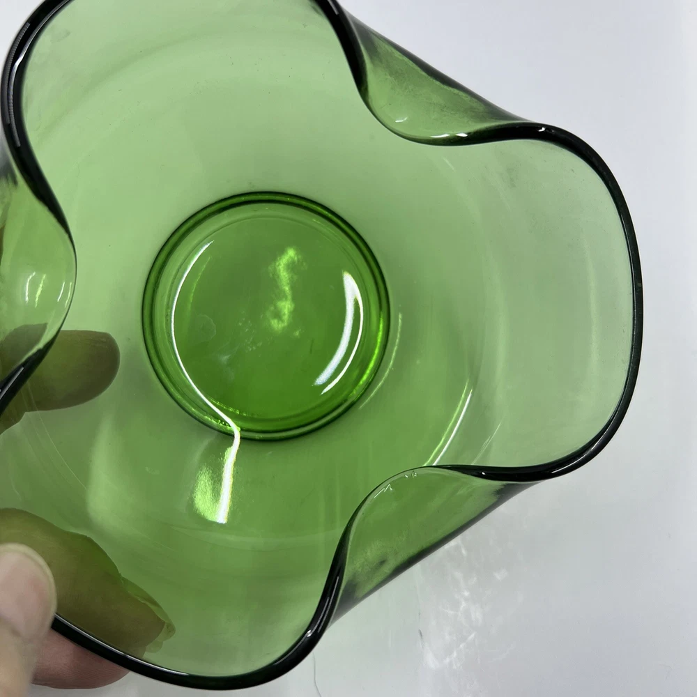 Absolutely love these vintage green glass bowls! The folded sides give them such a cool mid-century vibe, and they’re perfect for chips and dip or just as a stylish display piece. The color is gorgeous, and they’re in great condition—no chips or flaws. Super happy with this find!