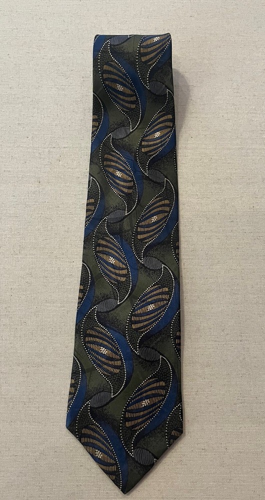 $ 12.68Tommy Hilfiger Green Burgundy Two-Tone Italian Silk Tie with Coat Arms Motif