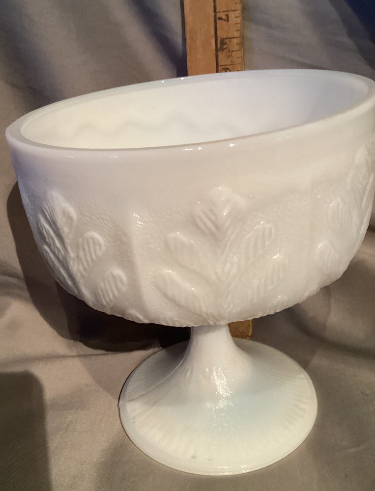 Vintage Milk Glass Oak Leaf Compote Candy Dish Mid Century
