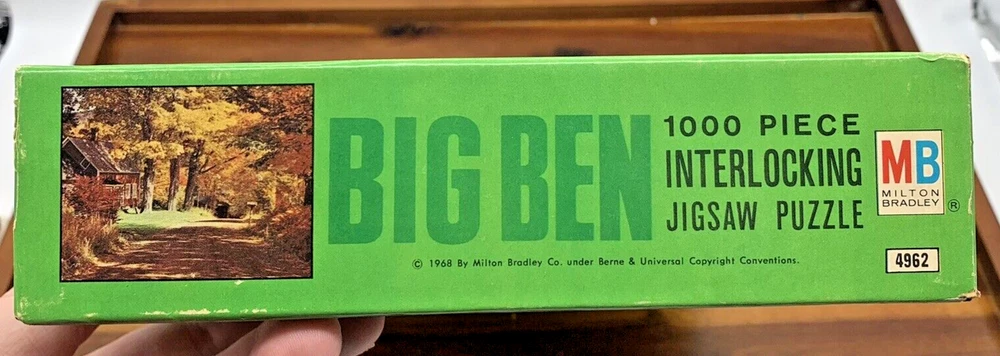Vintage Milton Bradley BIG BEN 1000 Piece Jigsaw Puzzle #21 Autumn Road 26”x20” 1968 1960s Still new in original box, never opened! (Please look carefully since our vintage/antique items are sold "as found" - Please zoom in on photos for a better view of the item's condition. We do our absolute best to research all items we sell. If you ever have questions on a listing, please reach out to me! *We will always package items securely and with care* Thank you for viewing!