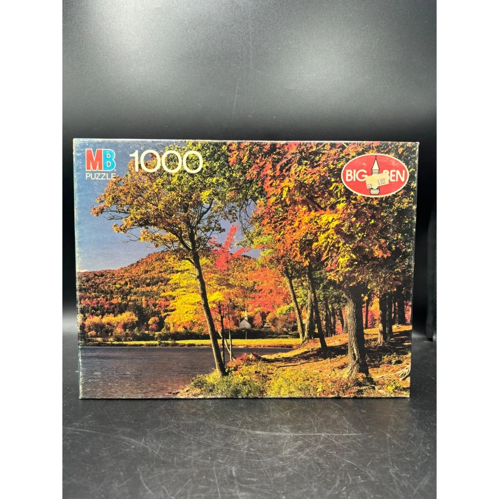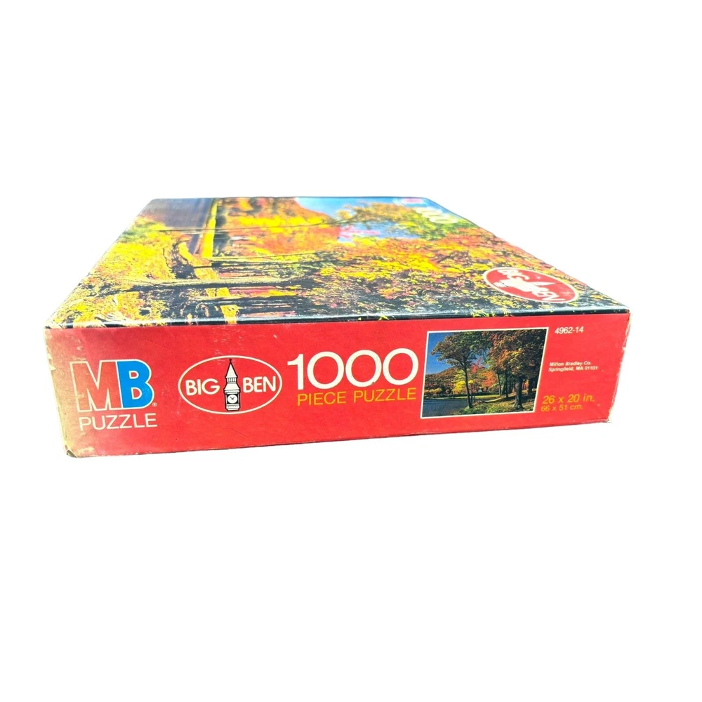 Vintage Milton Bradley Big Ben 1000 Piece Puzzle Eaton New Hampshire -1982 New Sealed box. ages 12 - Adult 26x20 in Box does have some fading and wear but it is still factory sealed multiple shipping options available