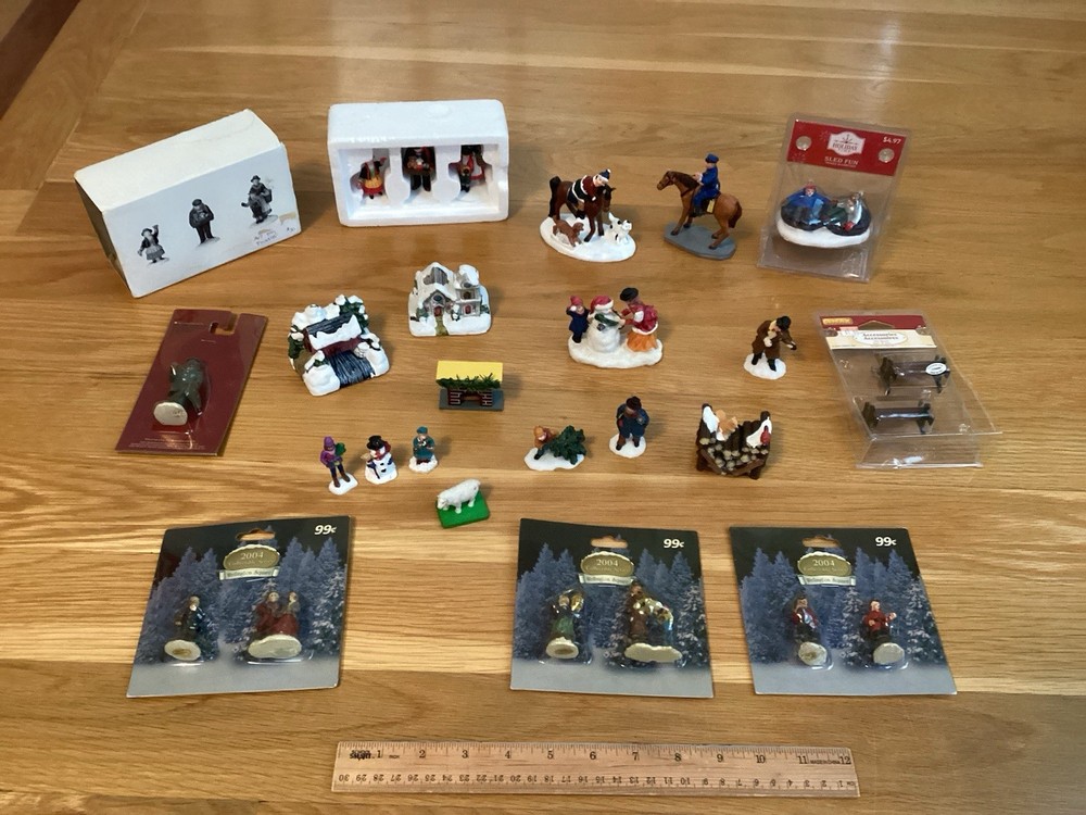 Vintage MINIATURE CHRISTMAS VILLAGE PIECES. Figures/ people, fireplace, benches/ bench, stone houses/ cottages, horses, more. Brands include O’Well, Lemax and Unbranded. Mixed sets. Some NEW but most pre-owned. A whole collection in one lot!! Please see photos to supplement this description. Ruler indicates size. I am happy to combine shipping so please see my other listings this week (including many vintage and collectible items INCLUDING OTHER MINIATURES!)!! Thanks and good luck!