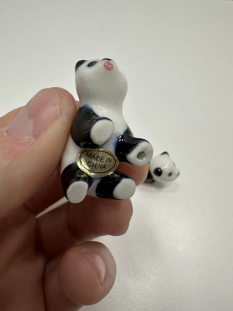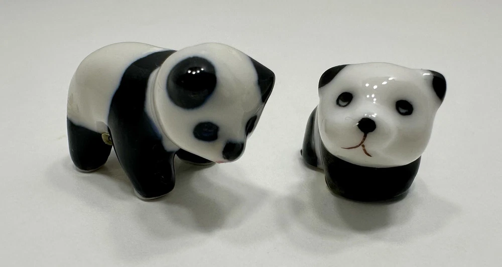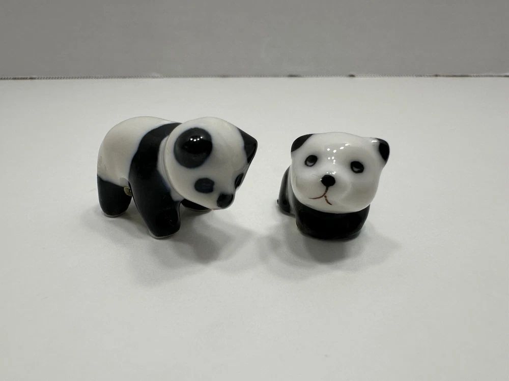 No chips or cracks Vintage Miniature Porcelain Panda Figurines Set Of 2 Made In China