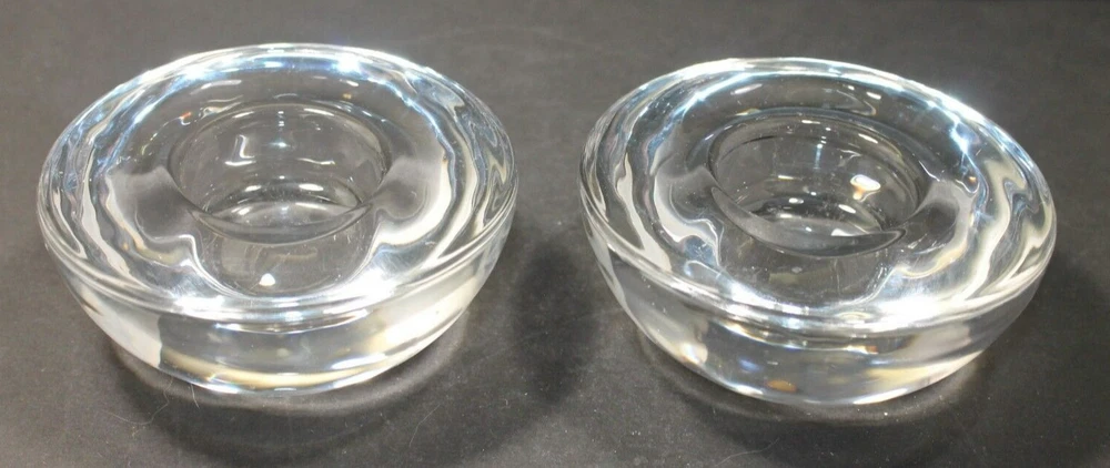Preowned Clear Glass Round Block Tea Light Candle Holder Set Of 2. They are in very good condition, no chips or cracks. They are clean. Measures: 1.6" H, 4" DIA rim. Please see photos for more details. Please note that the item is vintage and may show signs of wear. We have done our best to honestly and accurately describe and photograph the item, including possible flaws. What you see are the actual photos of the item being sold. If you have any questions regarding the item, please ask! We DO NOT SELL outside United States. SHIPPING The item will be shipped within three business days after receipt of payment. We ship via USPS to any location within the 48 continental United States, NO INTERNATIONAL SHIPPING. Shipping is calculated by EBAY based on the weight and size of the item plus packaging. We can combine shipping in case you buy multiple items that can be safely shipped together. Thanks for looking!