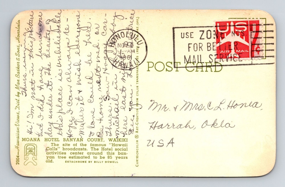 Vintage Moana Hotel Banyan Court Waikiki HI Hawaii Postcard