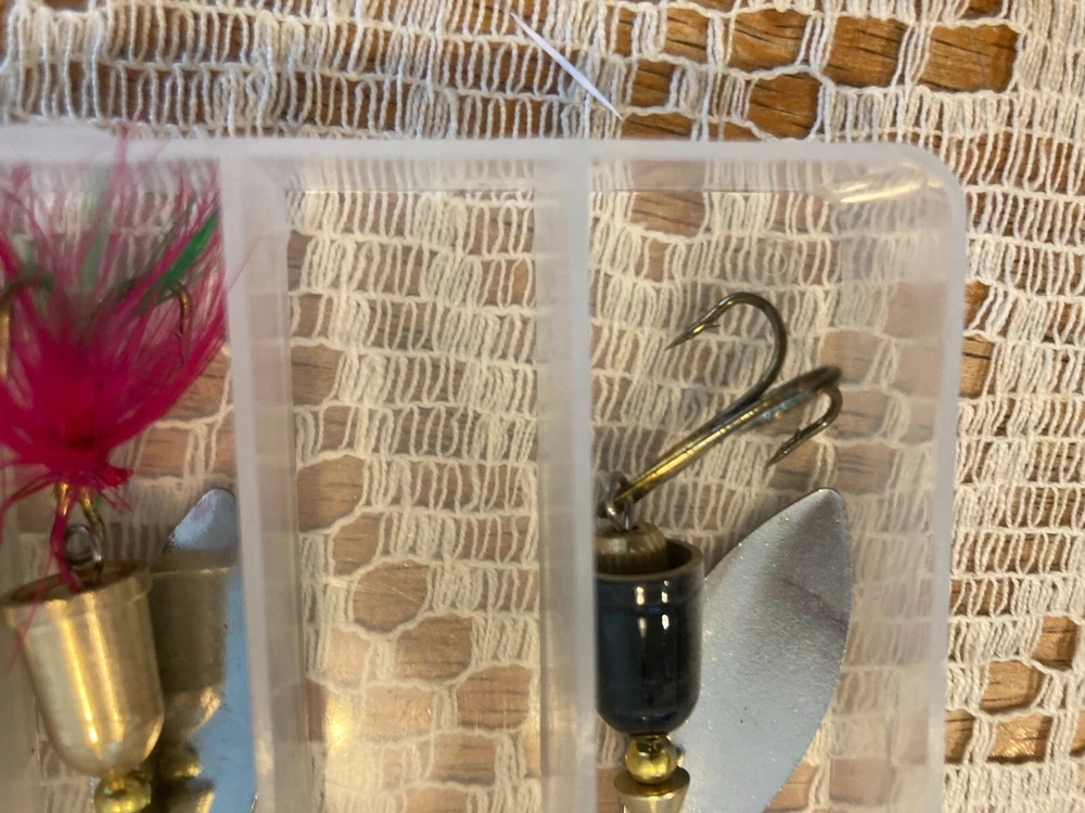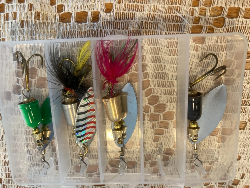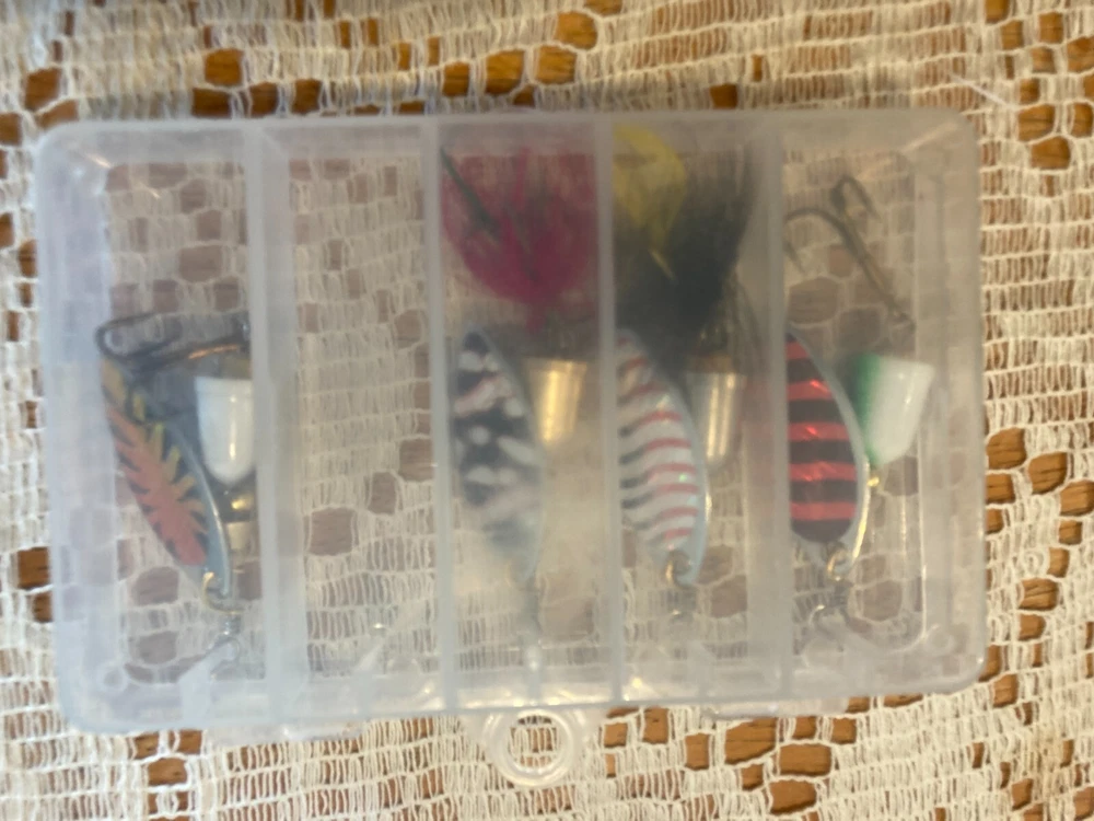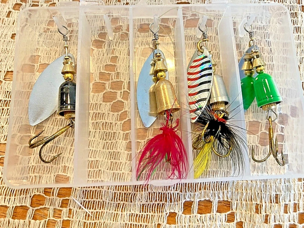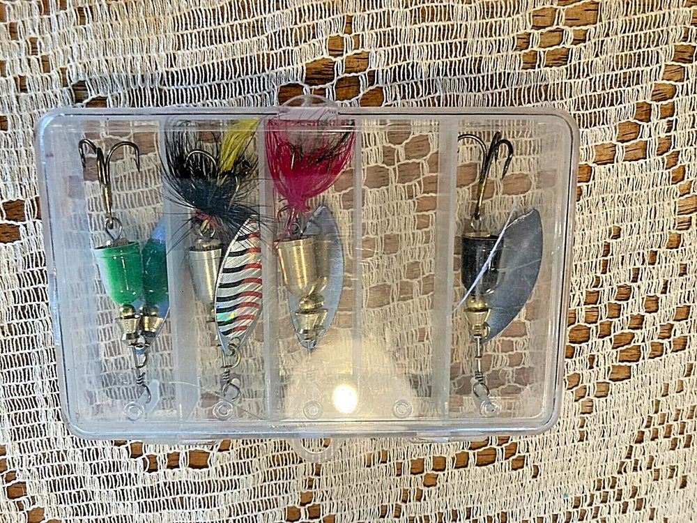 Listing is for one vintage or more modern fishing accessory, sinker/jig head molds, lures and more to be added on later. Condition is good/as is, most items are from estates I haven't tested them. Please feel free to check out all my items, nearly all listings are set up if you buy more than one item the invoice will discount 20% off. Thanks for looking! Items under 1 pound (small lurers, hooks, etc) will ship First Class and I will refund any shipping over actual cost. Vintage Bait Revolving Box - Green Tin - Good Condition old, appears functional and sound, drum rotates, lid opens, and belt guides present and in usable shape. As is condition, estate discovery and has not been altered. Vintage Blue Old Pal Metal Tackle Box 2 Trays - Good Vintage Condition, was being used as an artist paint and tools storage box, still very tidy but has some residual paint grime inside and a bit of missing blue paint from drawer/tray. Stren WC-Rell-Fill Pack, 4 (of the original 5) 250 Yard Spools of 2 LB test, New Old Stock, untested but all appears new/good. Shipping will be First Class, there will be a credit after purchase or request a quote - thanks!