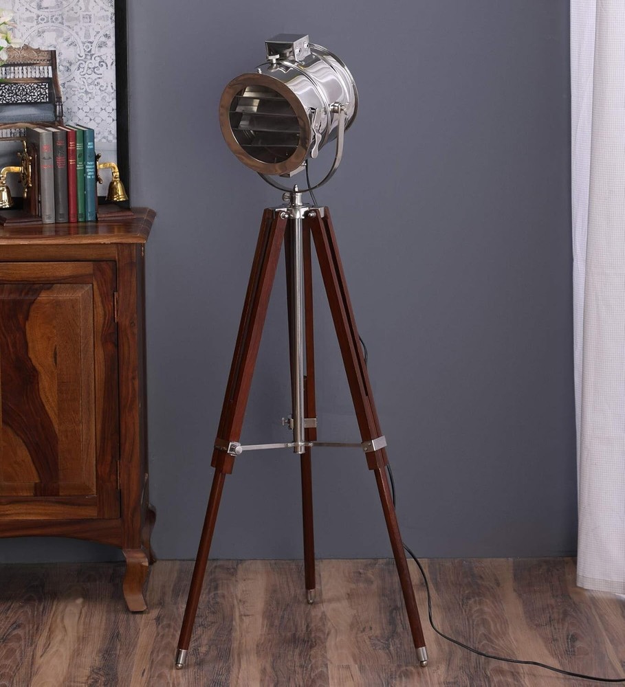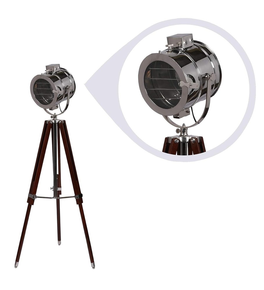 DESCRIPTION Material Used : Wood, Steel, Aluminum & Glass Color : Chrome & Brown Size : Total Height :55" inches Weight : 4.8 kg Approx. Usage : Decoration, Floor Search Light, corner lamp, corner corner light Packing: Packed in a package, Corrugated Export Packaging Wiring : In accordance with national standards (AU, EU, UK, US) You can set it in any place you need, such as bedroom, living room, reading corner, apartment, music room, media room, painting room, office and so on. SOLD BY MEDIEVAL REPLICAS