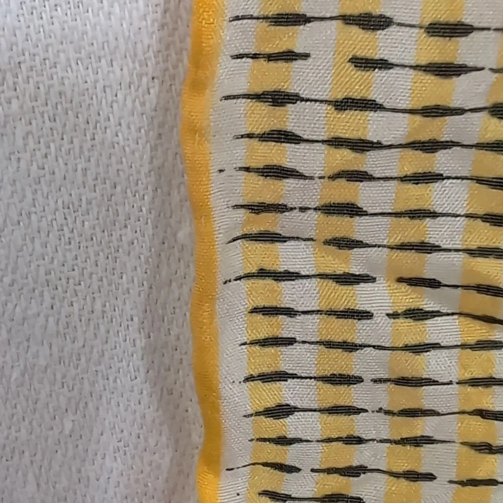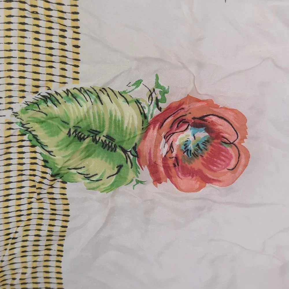 Vintage Momme made in Japan rayon silk blend square scarf black yellow border floral print hand rolled edging excellent used condition measures approx 28" square