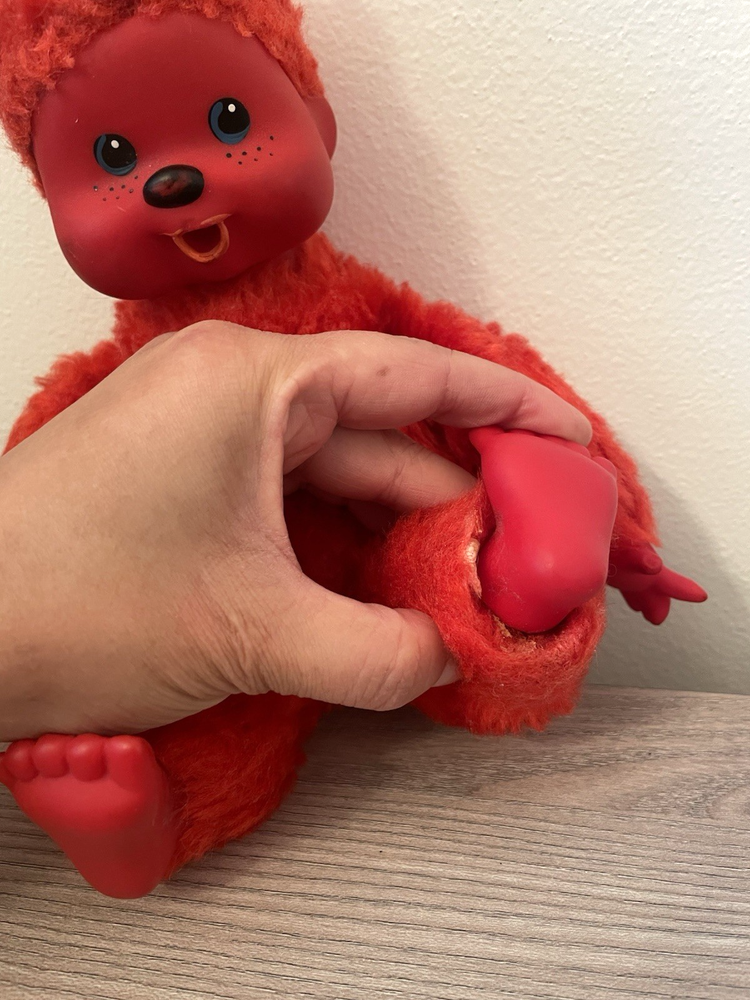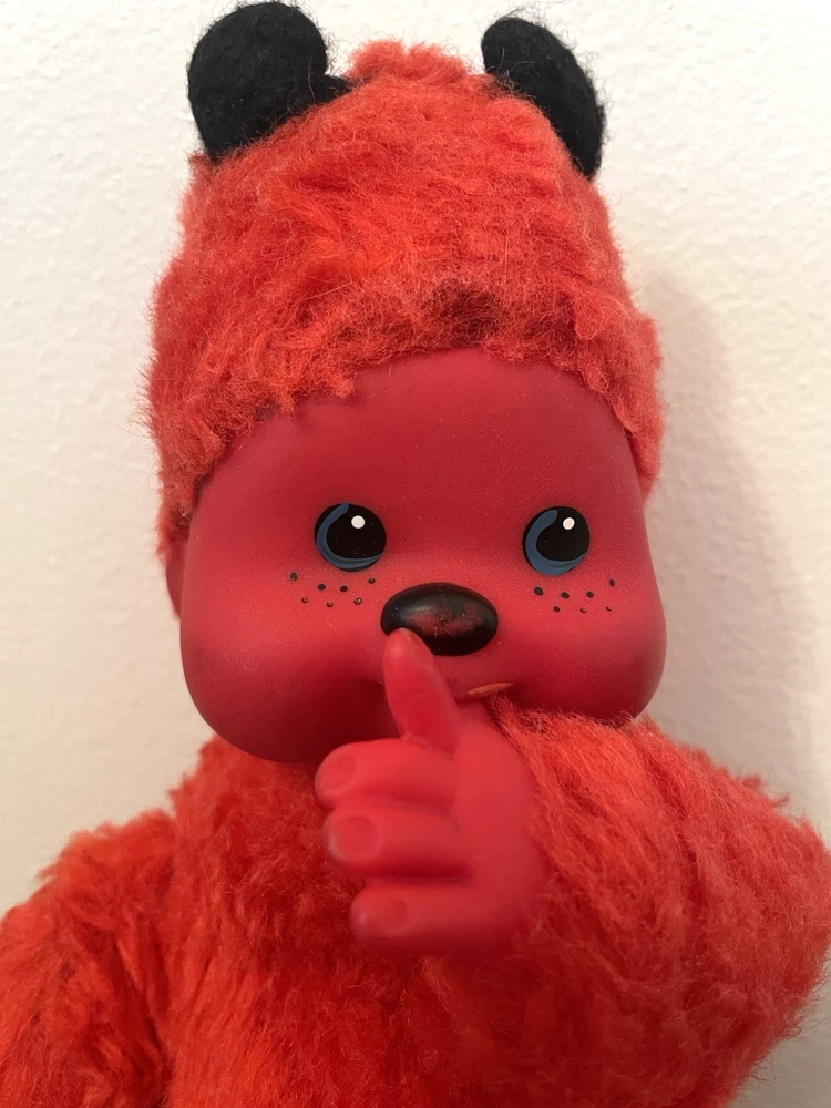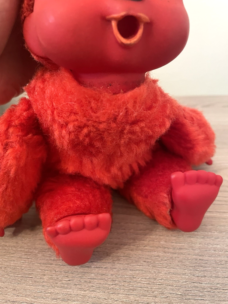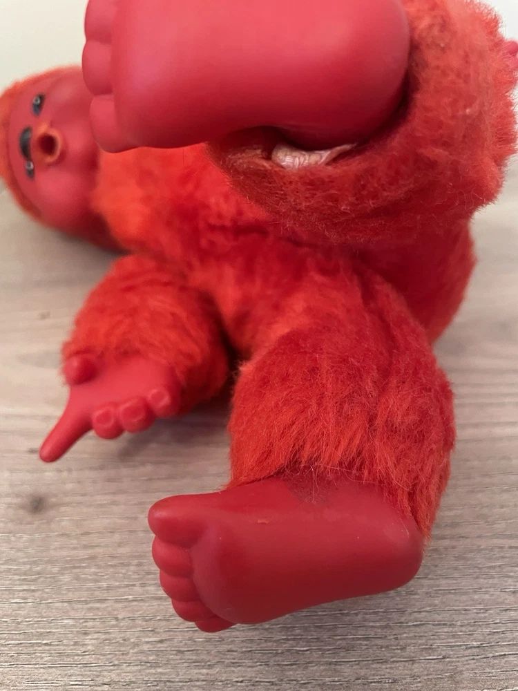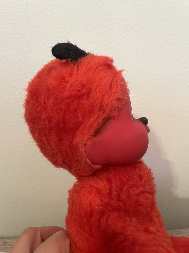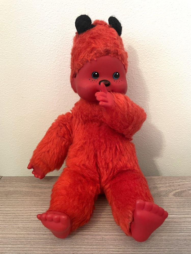 Vintage Monchichi Red Devil Monkey Thumb Sucker Rubber Face Plush Toy