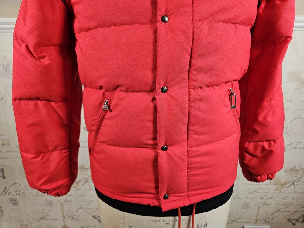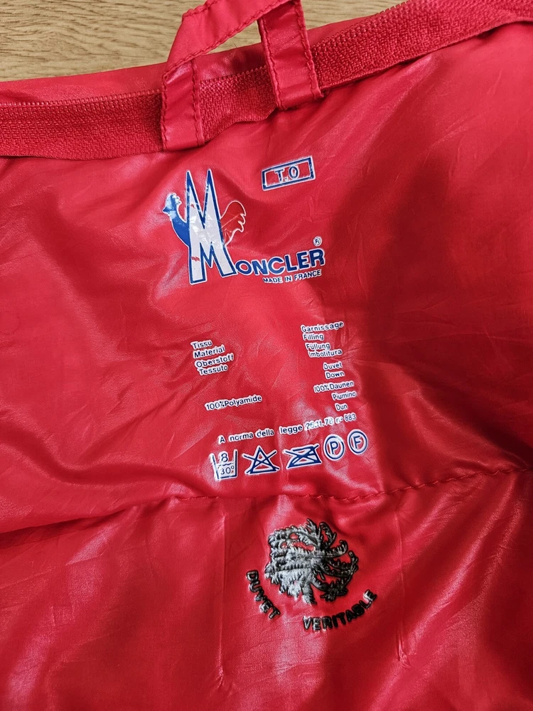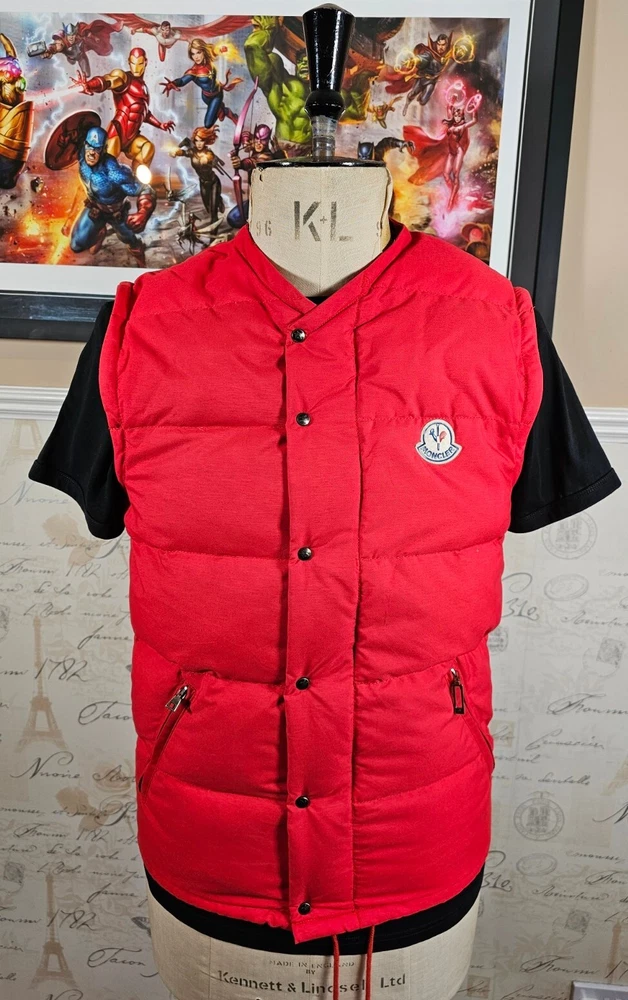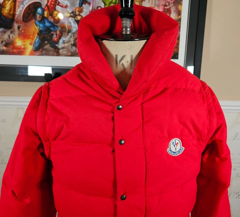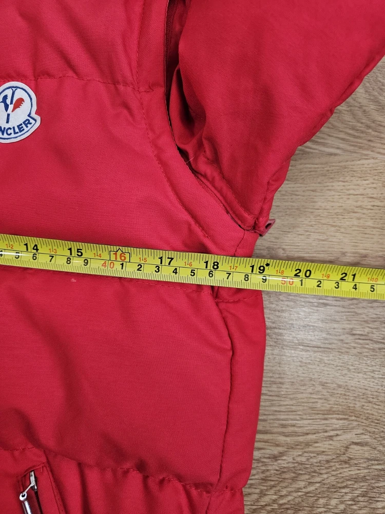 **Please see measurements within the photos towards the end and also mentioned below. Ensure all is well before purchase to avoid unnecessary returns** Very good used condition. A small 1mm fabric hole to front (easy repair if wanting, see photo). Two zip pocket pulley's different. Main zip quite stiff but fully functional. One or two very faint marks. Hardly noticeable. True genuine vintage Moncler puffer jacket, 90's era Down fill with durable outer fabric Red in colour Removeable sleeves and collar, turning into a gilet Fits a men's XS/Small Made in France Measurements: Pit to pit - 17/18 inch Shoulder to sleeve end - 24 inch Bottom of collar to hem - 25.5 inch Shipped with tracking included Global Shipping available with Ebay's Global Shipping Program Packaged securely and posted within two working days (Monday, Wednesday, Friday dispatch) Photos taken in Natural Light Trusted Seller