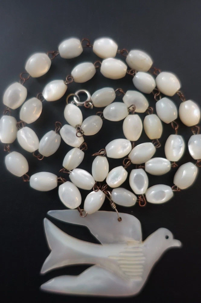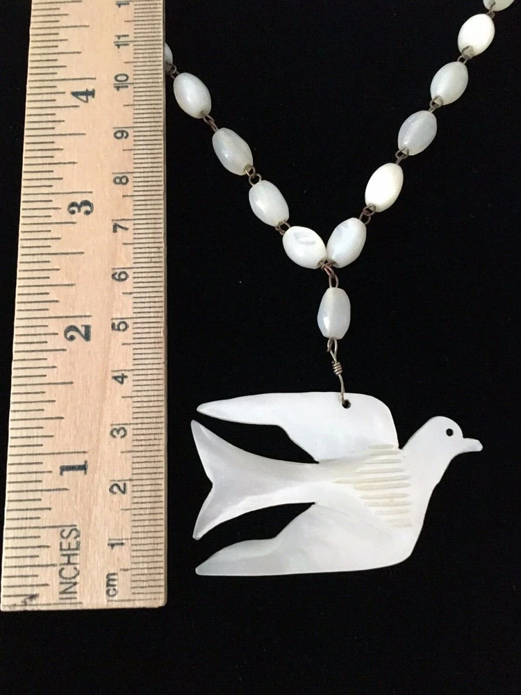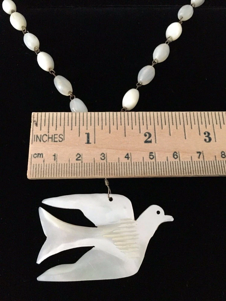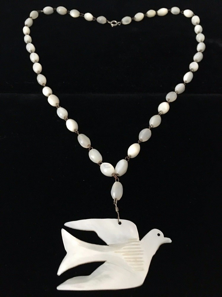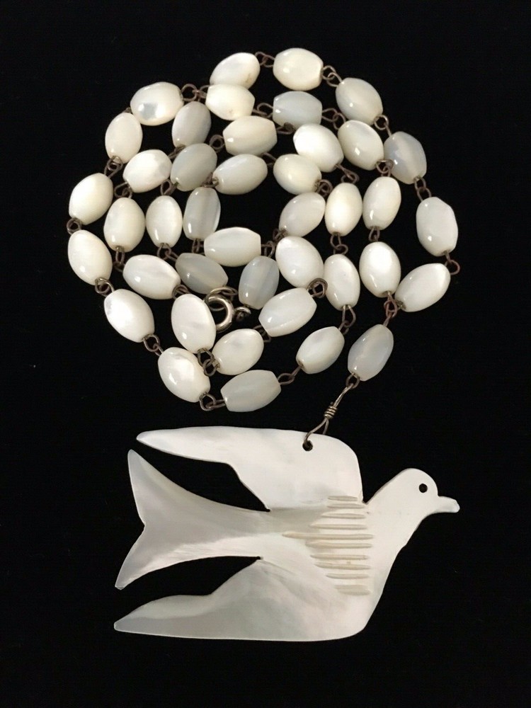 Chain Type:Mother of Pearl BeadJewelry Department:FineSeller Notes:“Collector's Alert - Great Vintage Condition”Vintage:YesSigned:NoMaterial:ShellNecklace Length:24 inClosure:Spring RingMain Stone:Mother of PearlPendant Shape:DoveType:NecklaceOriginal/Reproduction:OriginalCountry of Origin:UnknownDepartment:WomenStyle:PendantModified Item:NoMetal:Stainless SteelMain Stone Color:IvoryBrand:Unbranded