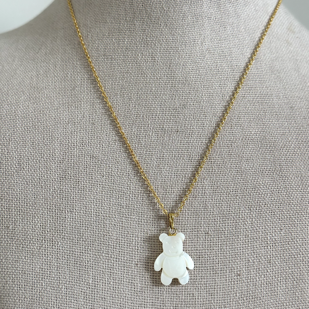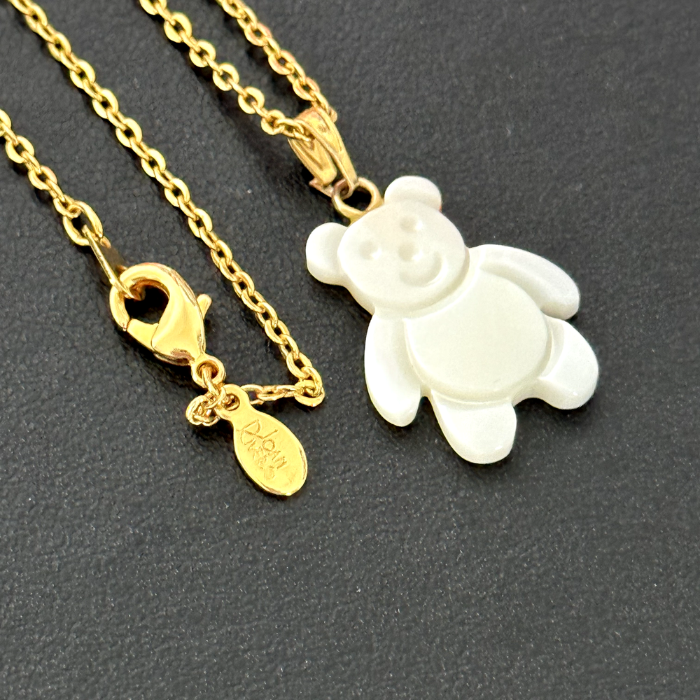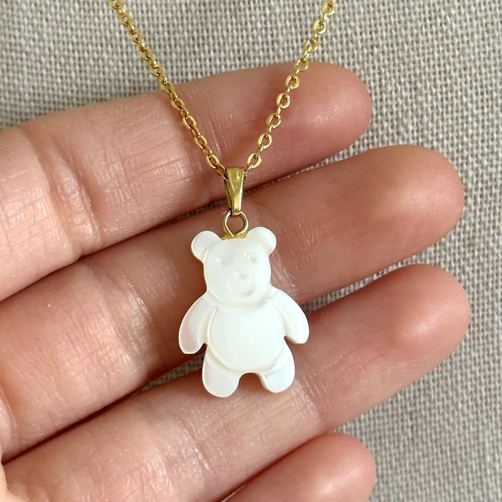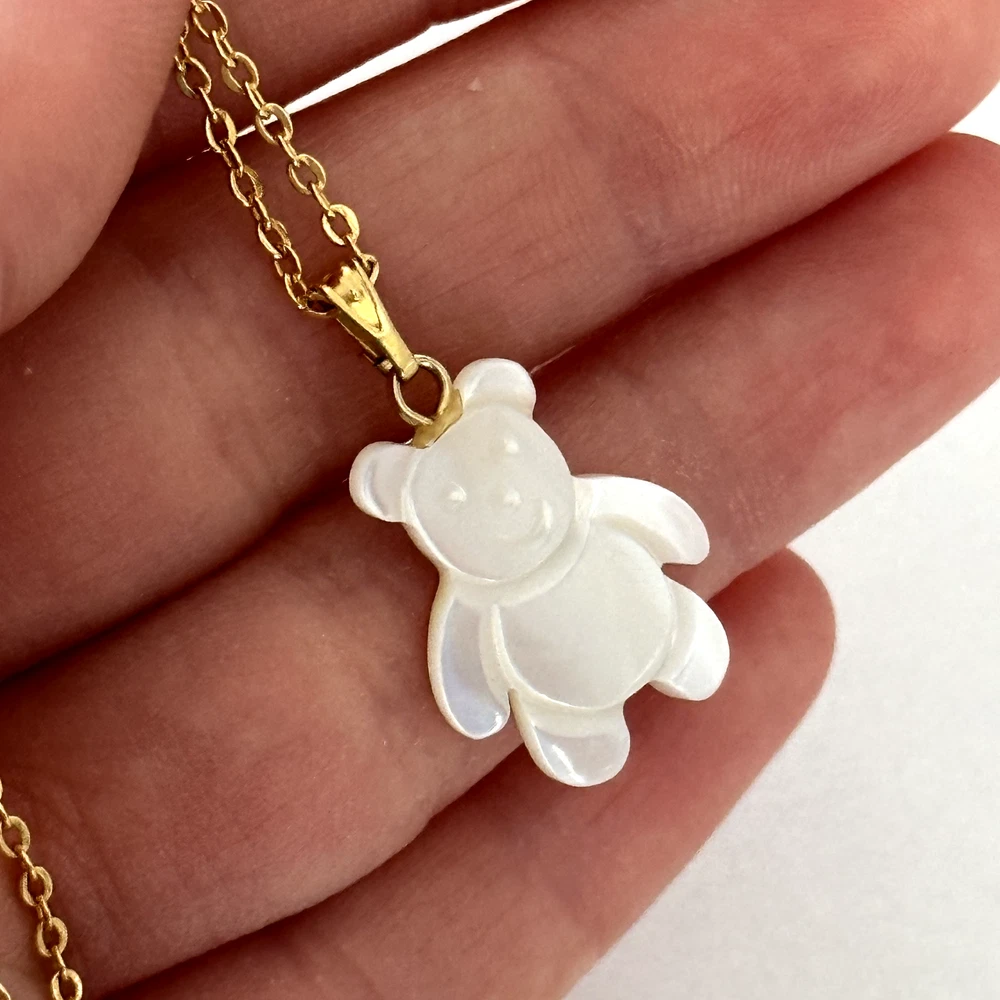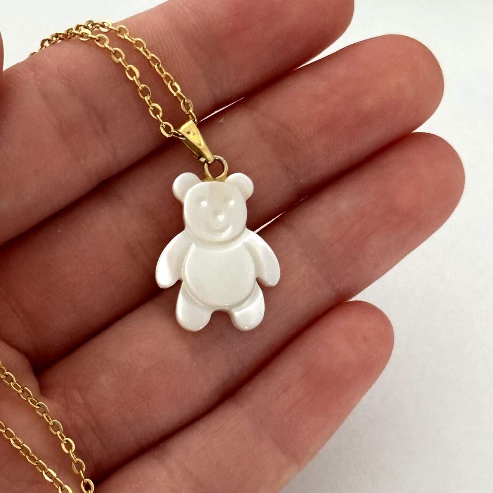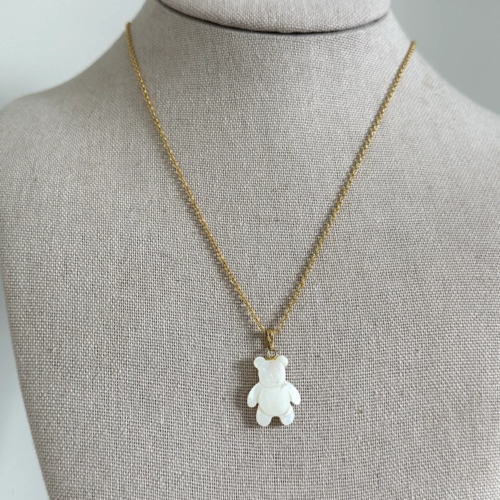 Lovely Vintage Carved Mother Of Pearl Teddy Bear On Joan Rivers Gold Tone Necklace Chain length: 18" Pendant length: 1" The chain is signed by Joan Rivers, the pendant is not. Very good vintage condition. - Fast shipping, I ship the same or next business day! I also combine shipping. - Thank you so much for shopping with me and please check out my other jewelry listings, I post new pieces daily!