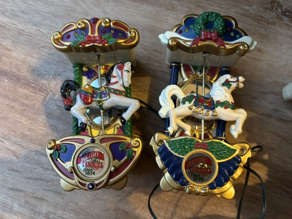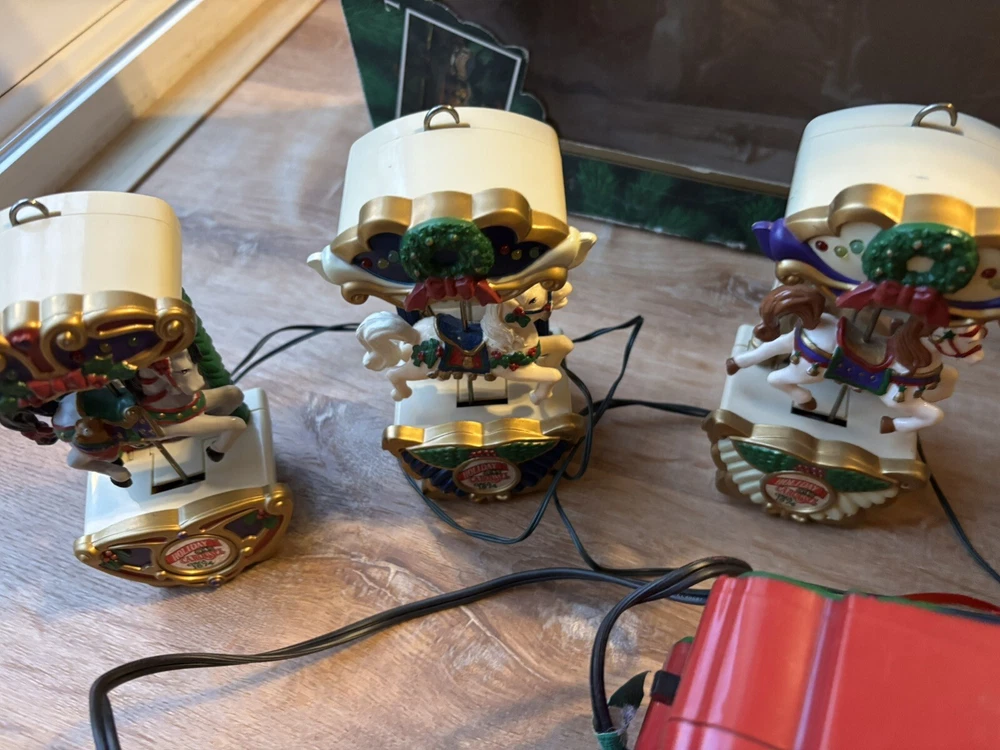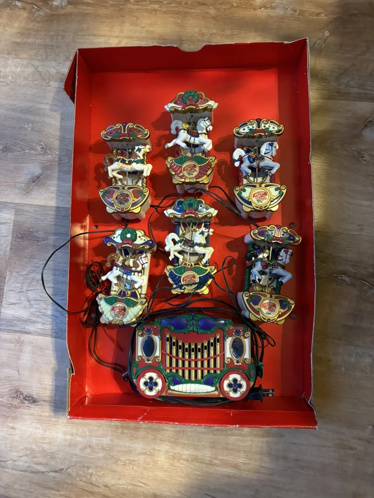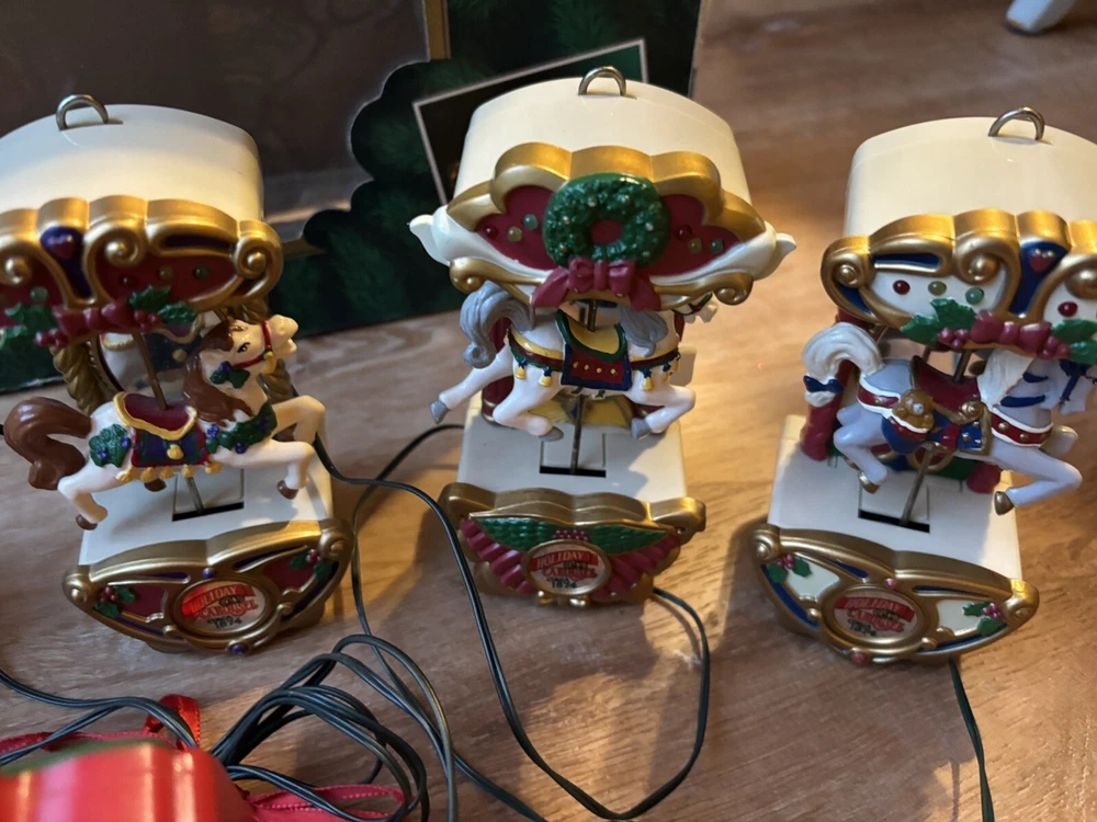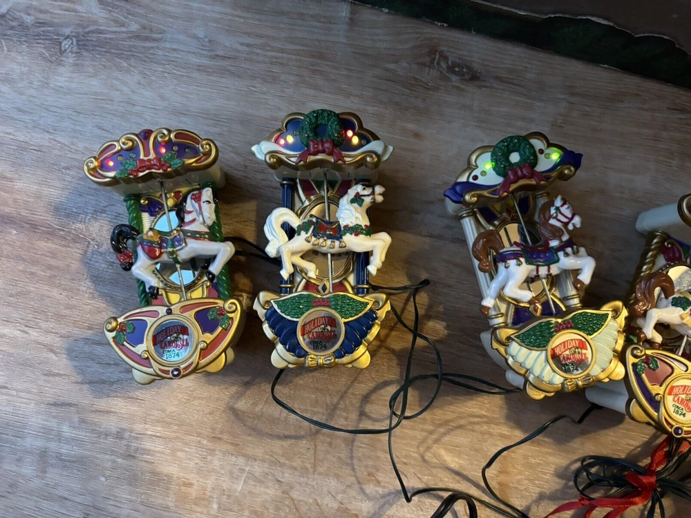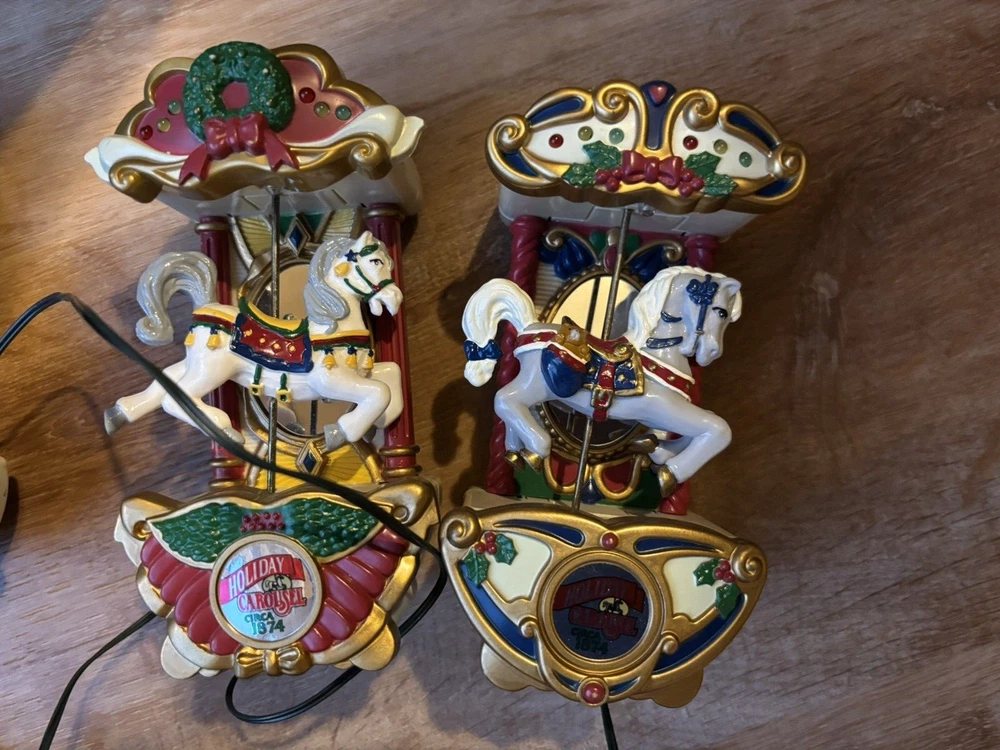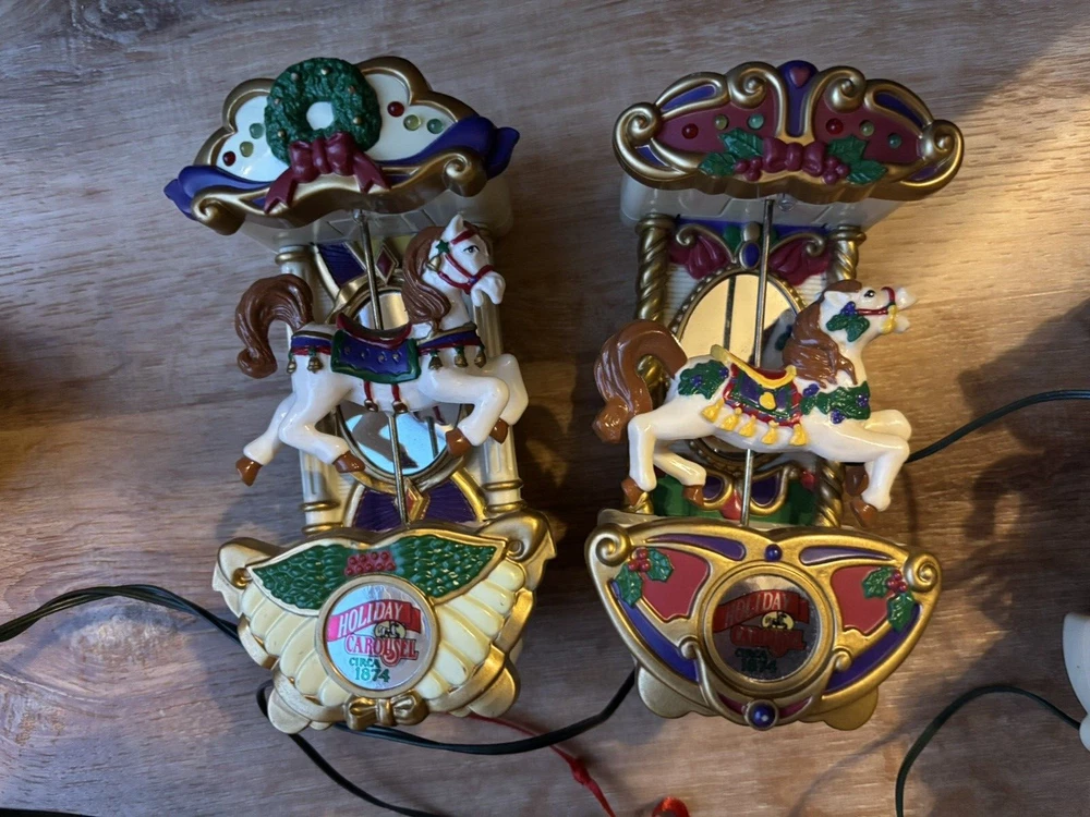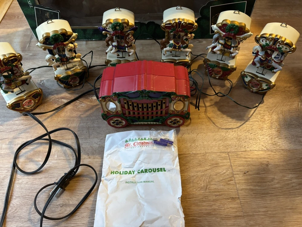 Original Vintage Mr. Christmas Holiday Carousel Lighted Musical Horses that works as designed. a set of 6 carousel horses ride while the circus organ plays 21 favorite Christmas carols with box--shows wear manual tested and in working condition We only accept returns if there has been an error in our listing.