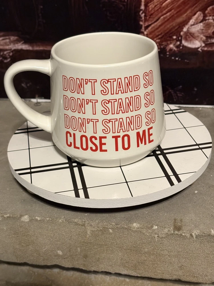 Vintage mug with double sided lyrics by “The Police” reading “don’t stand so close to me”. In near perfect condition.