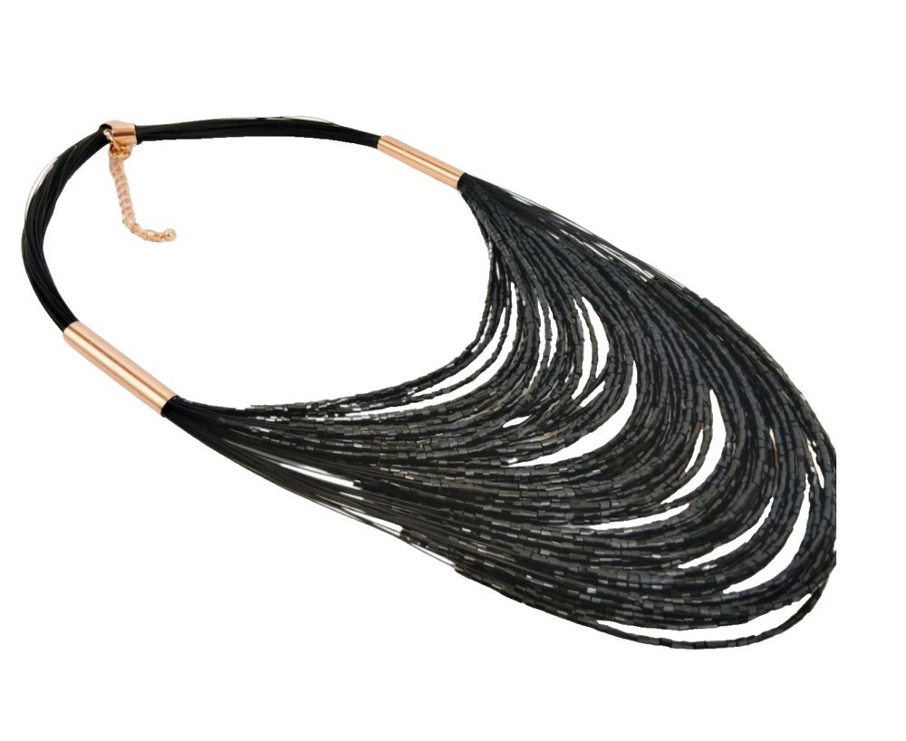 Versatile Vintage Multi-Strand Layered 16.5" Glass Beaded Bib Necklace w/ 3" Extender JN1465 Add vibrant energy to your look with this glass seed bead masterpiece. Lightweight yet impactful, it's perfect for a pop of texture for everyday. Every piece of jewelry you wear has a story to tell—make yours unforgettable. Treasure Vault’s vintage and statement collections let you channel power, grace, and edge, no matter the occasion. Perfect for the woman who isn’t afraid to shine, our pieces are curated to elevate your style, day or night. Ready to write the next chapter? Bundle & Save: One treasure is never enough. Add a little more to your story and save while building your perfect collection. #SeedBeadJewelry, #MultiStrandStatement, #BeadedNecklaceLooks, #UniqueBoldStyle, #BohoJewelryTrends